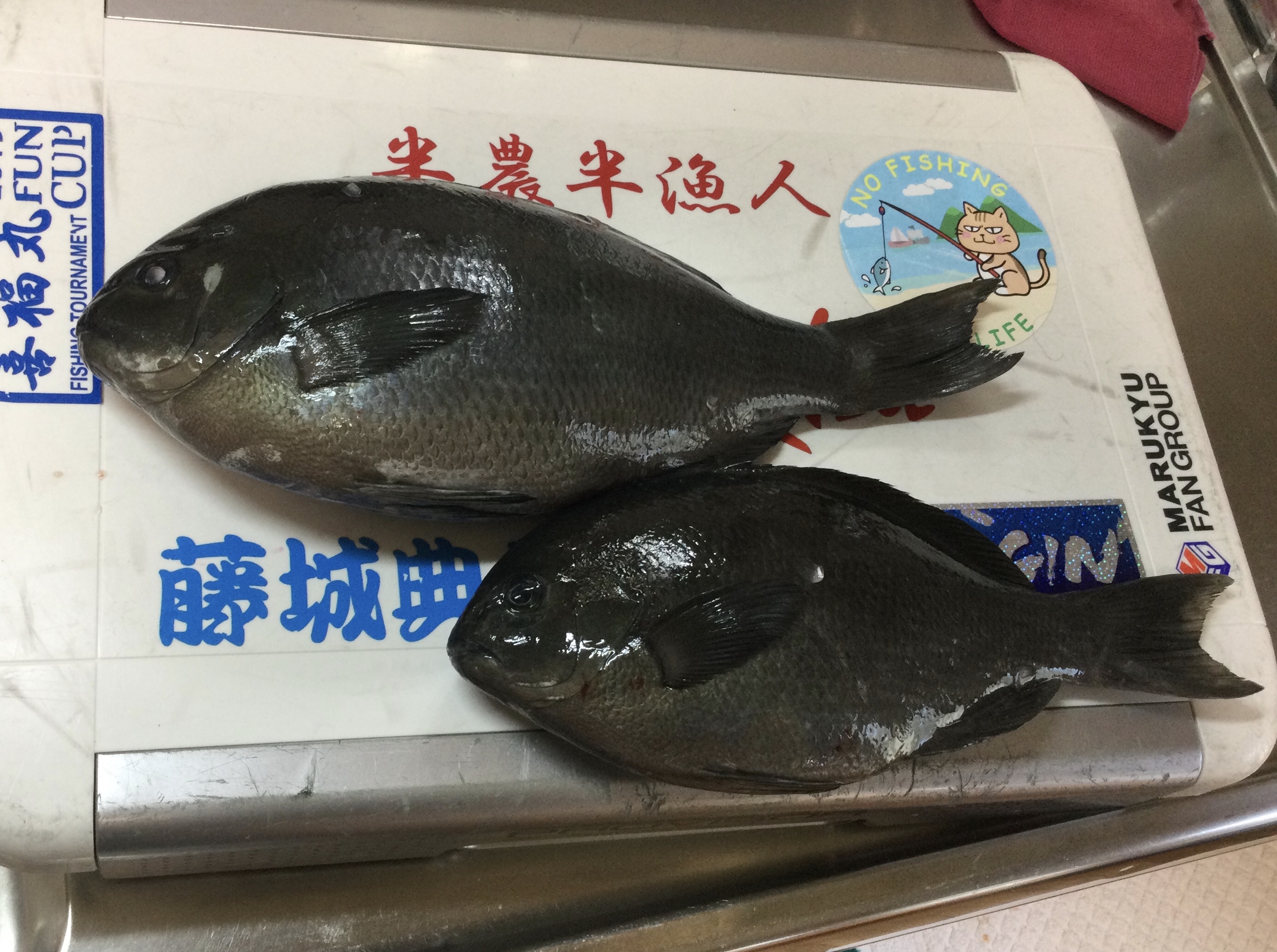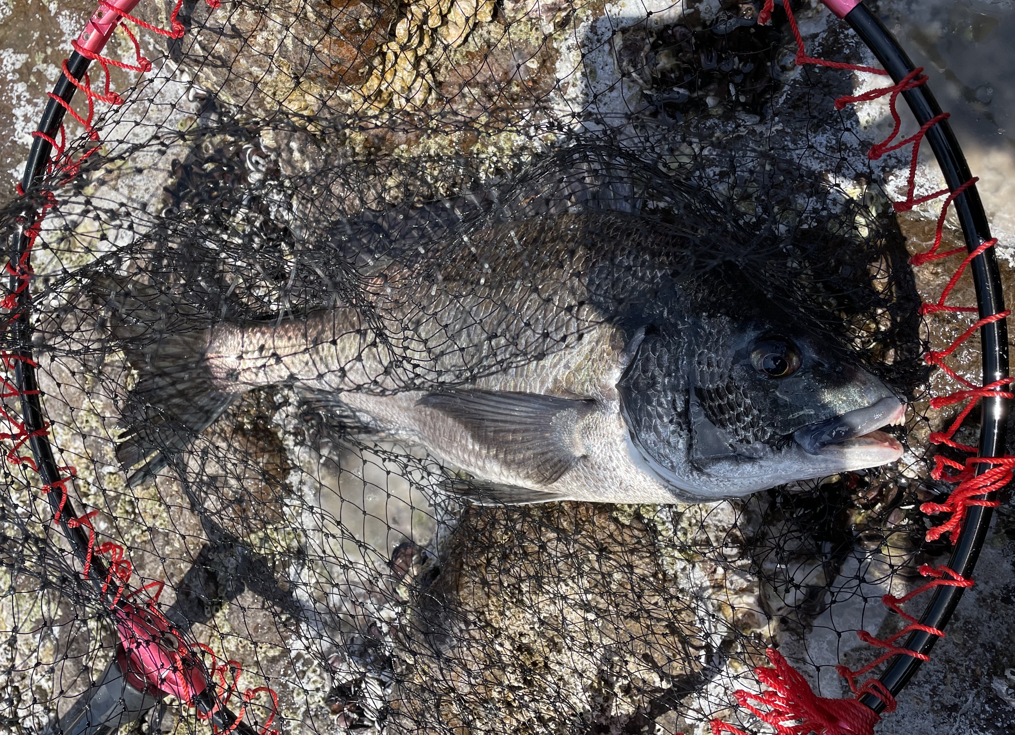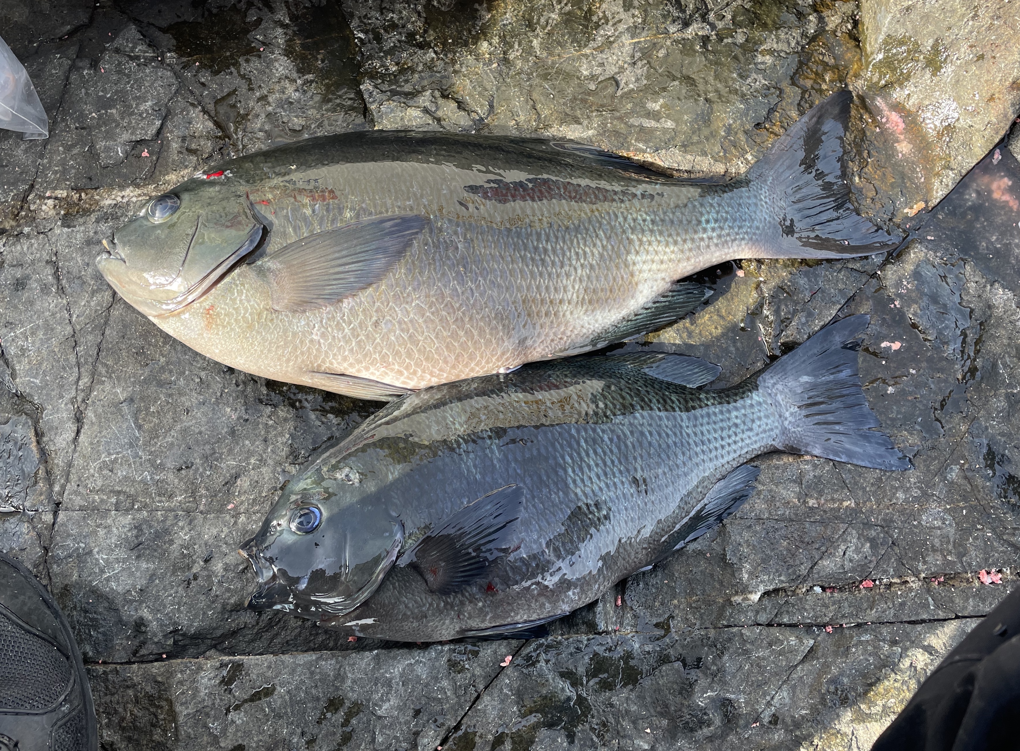 ノブ君とジャイアンはぽつりぽつりとクロを釣り上げていますが、私にはなぜかチヌばかり。