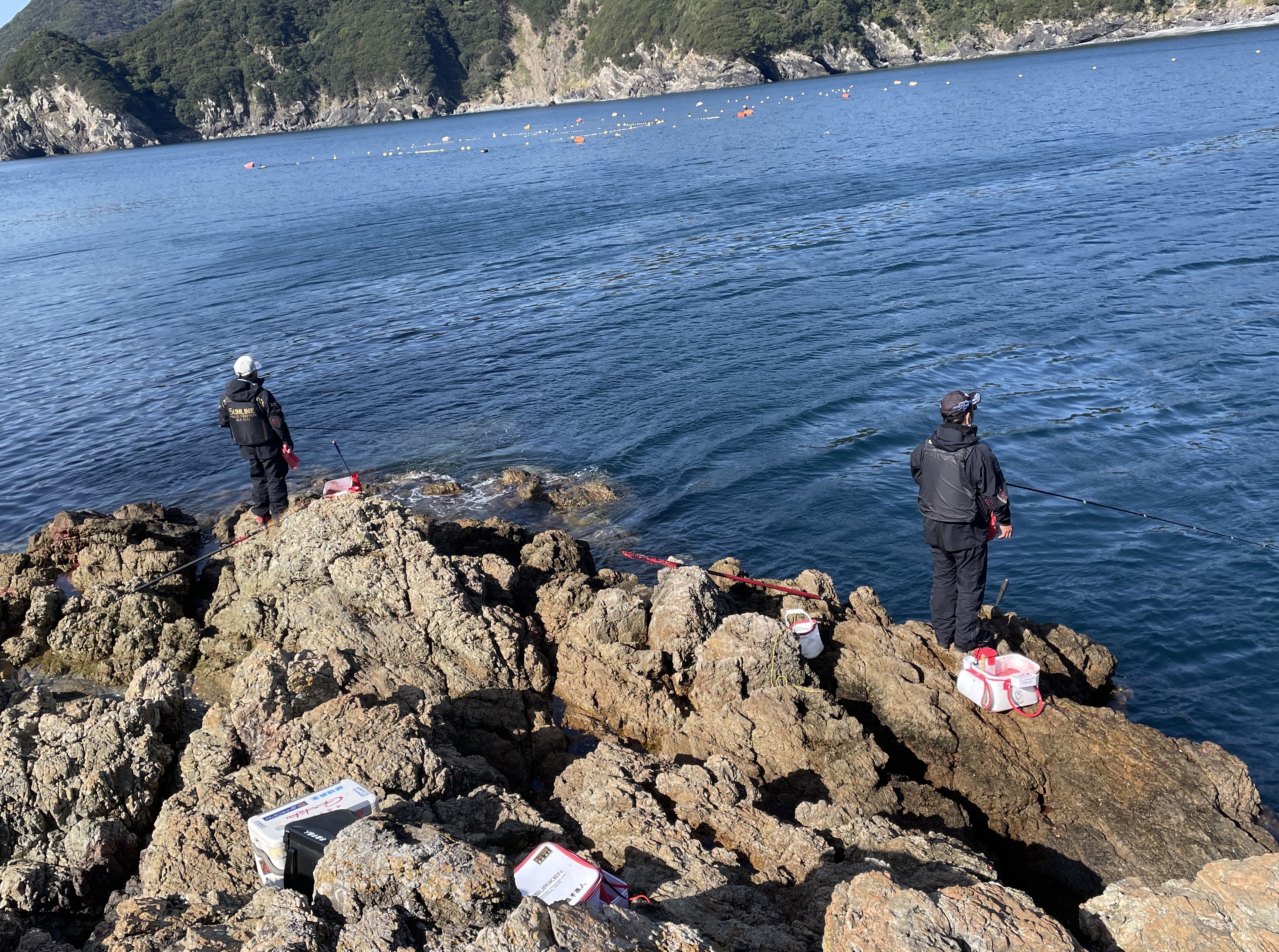 渡船はいつもの功明丸にお世話になり、北寄りの風に強い半島側に展開しました。