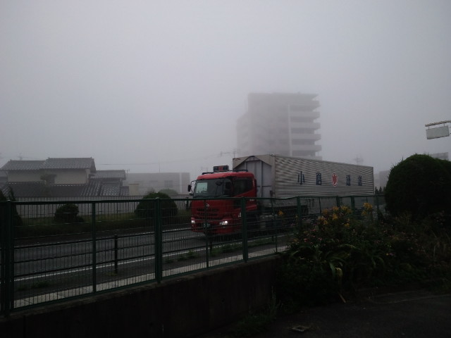 朝起きた時には霧は出ていませんでしたが、仕事に行く時には深い霧が出ていました。