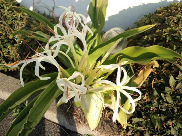 会社の車庫裏のハマユウの花が咲いていました。