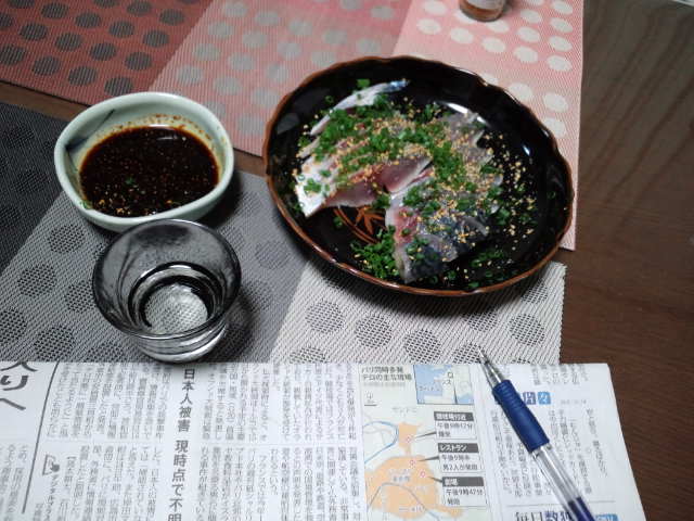 今が旬のサバを〆サバにして一杯やっています。