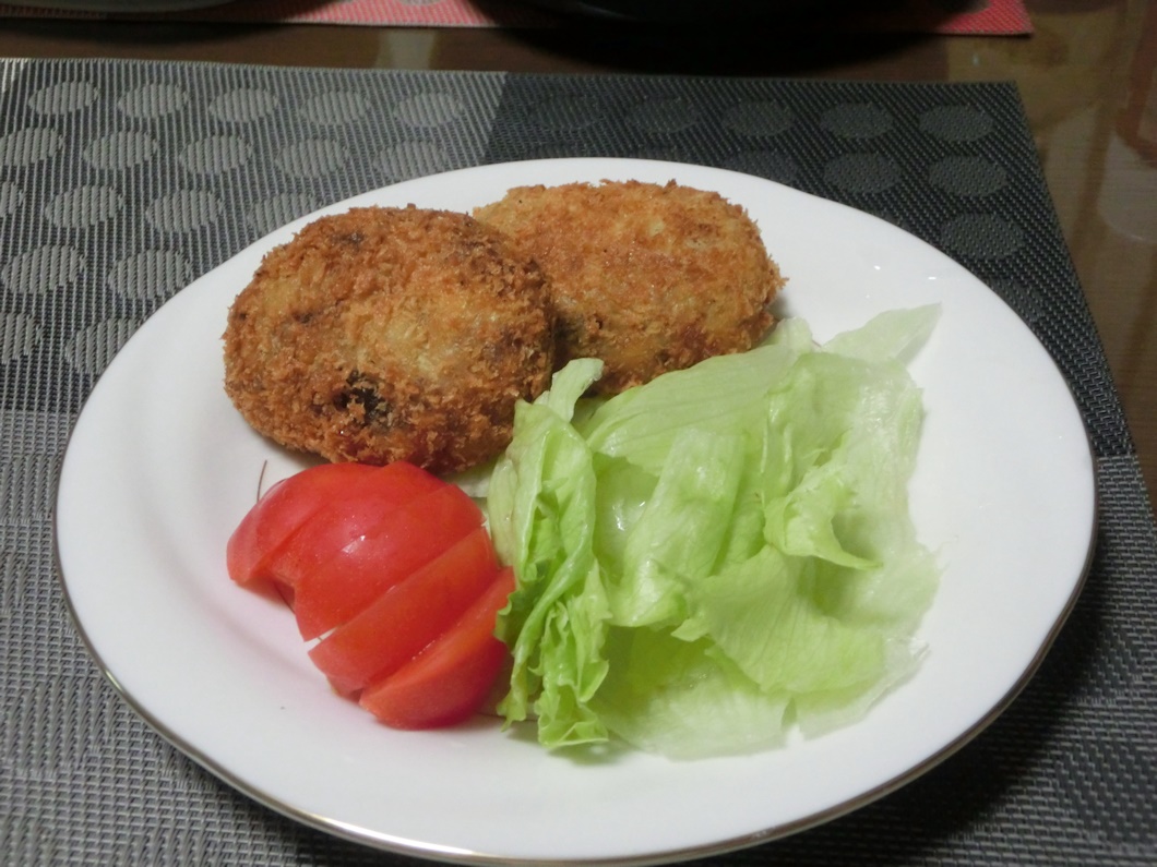 今日は昨日のグラタンの残りでシチューと豆入りコロッケを作りました。