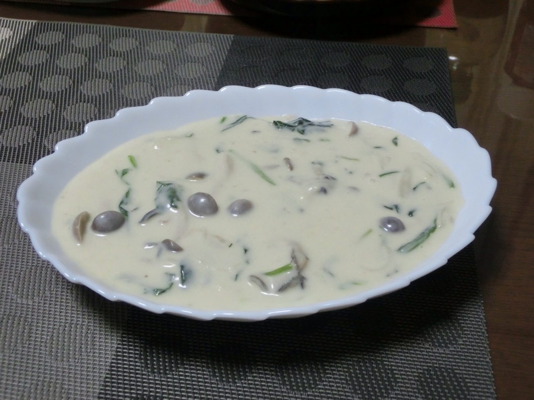 牡蠣とほうれん草のシチューです。