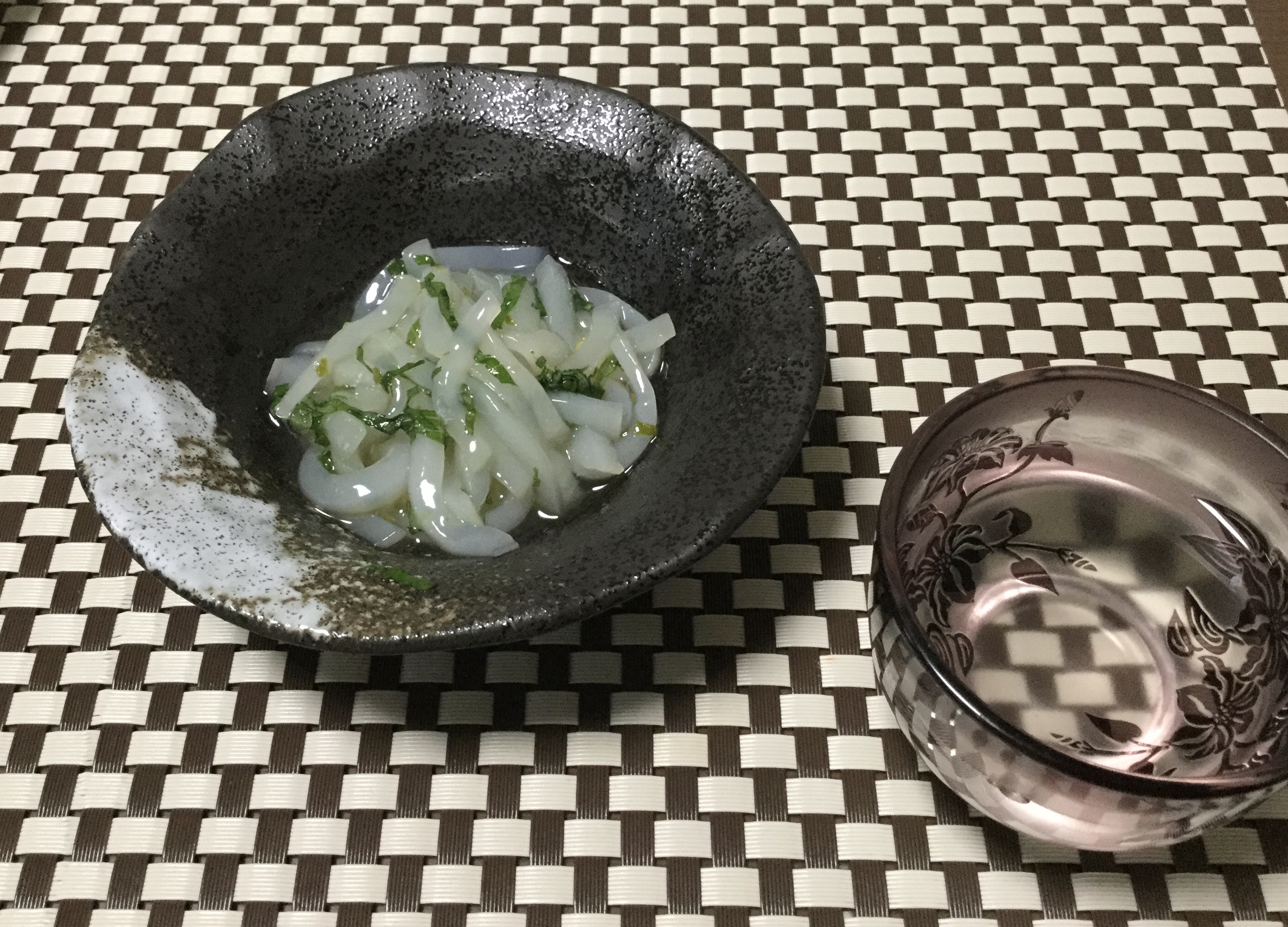 酒の肴は、馴染みの魚屋が休みだったので、夏に釣ったイカで一杯です。