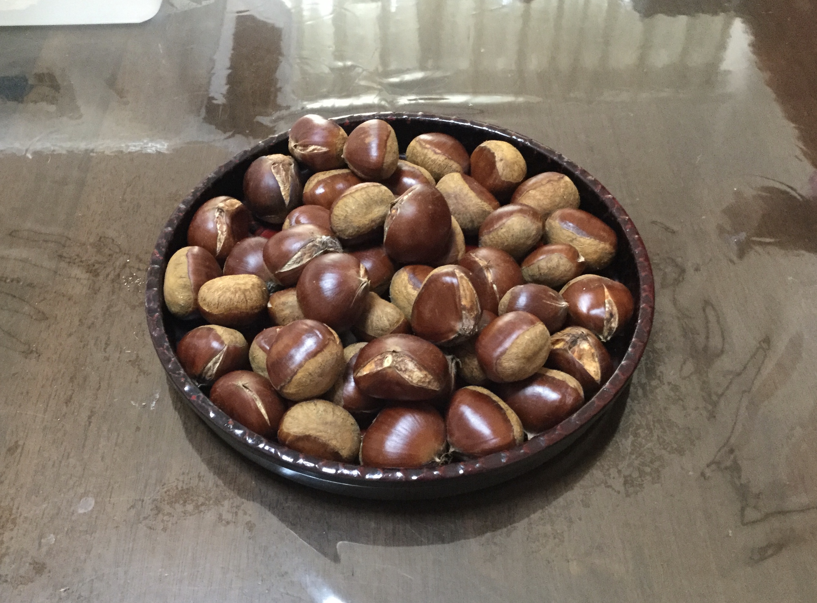 最後は、角田師匠から頂いたはち切れんばかりの栗で(実際に鬼皮がはち切れてました)