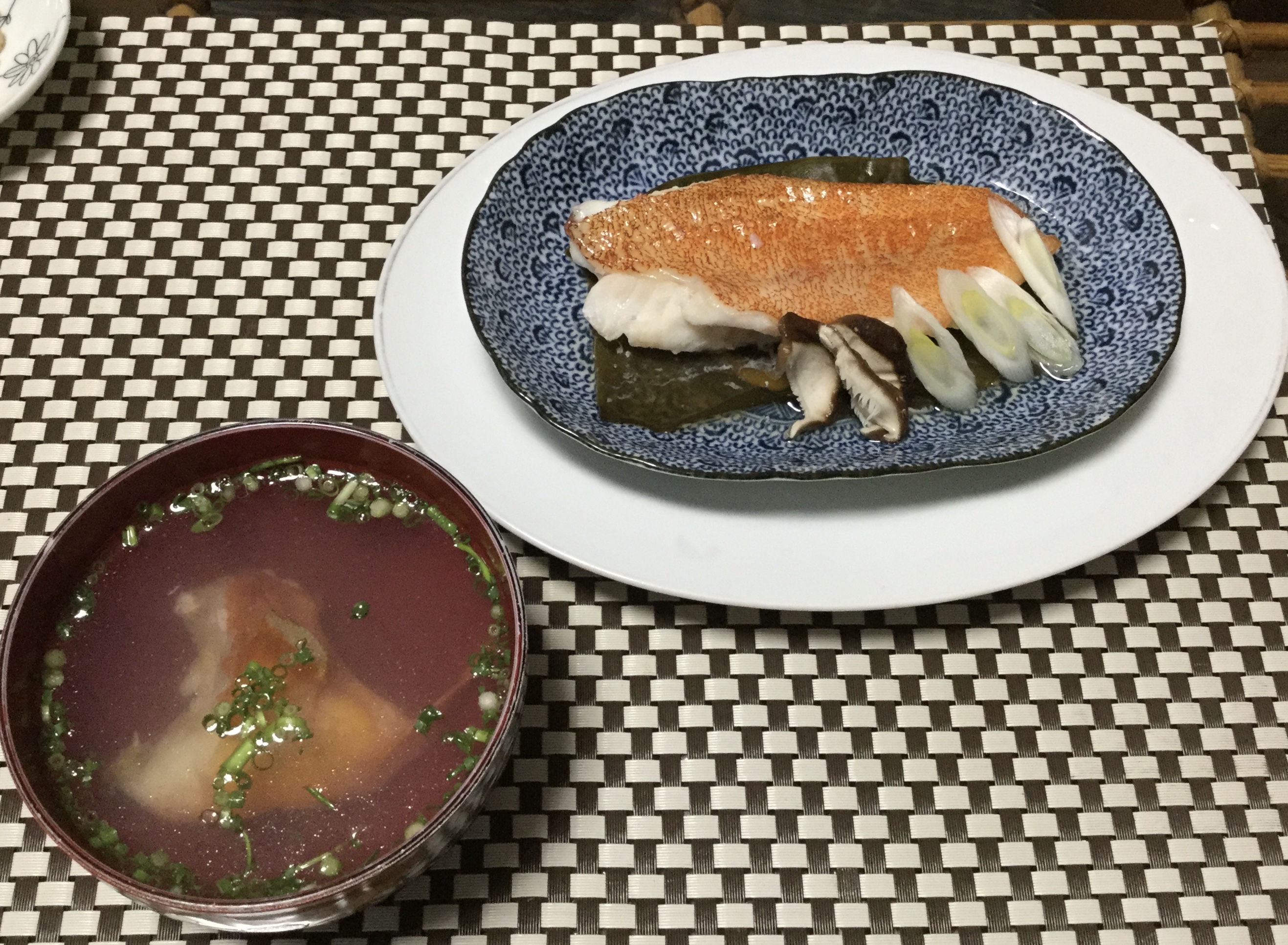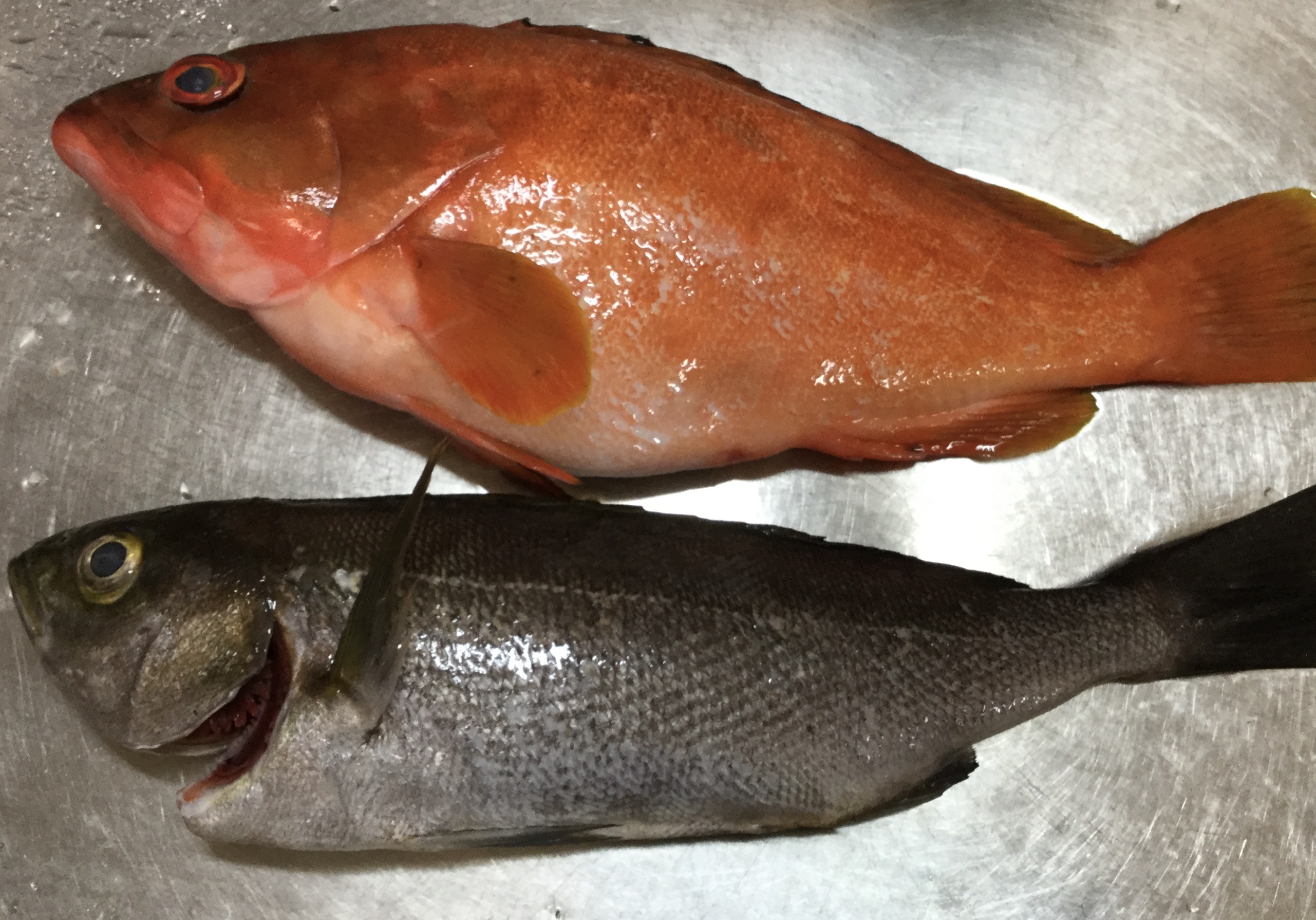 夕食は、兼元ケンボーと藤井のぶくんから頂いたアカハタとイサキで。