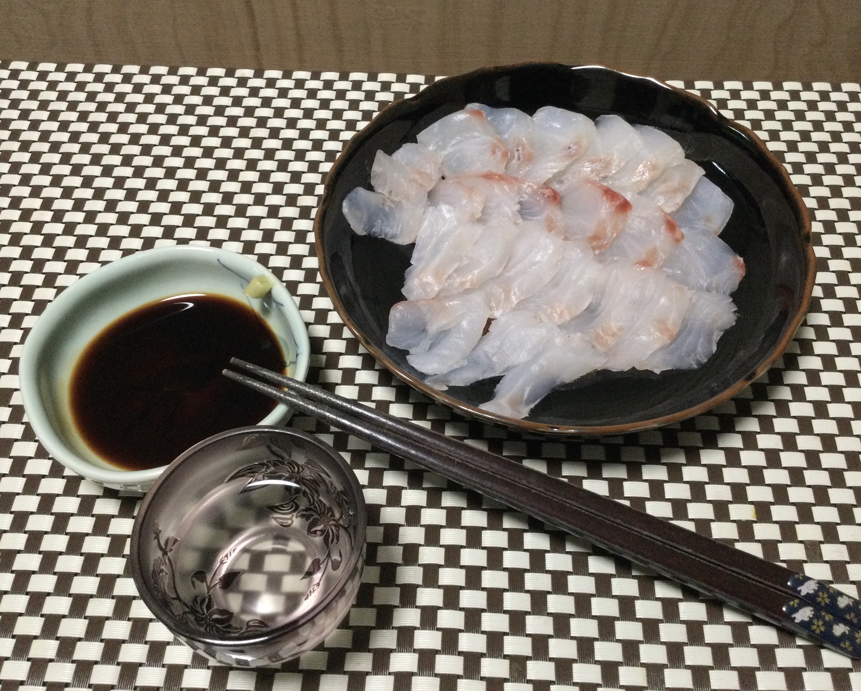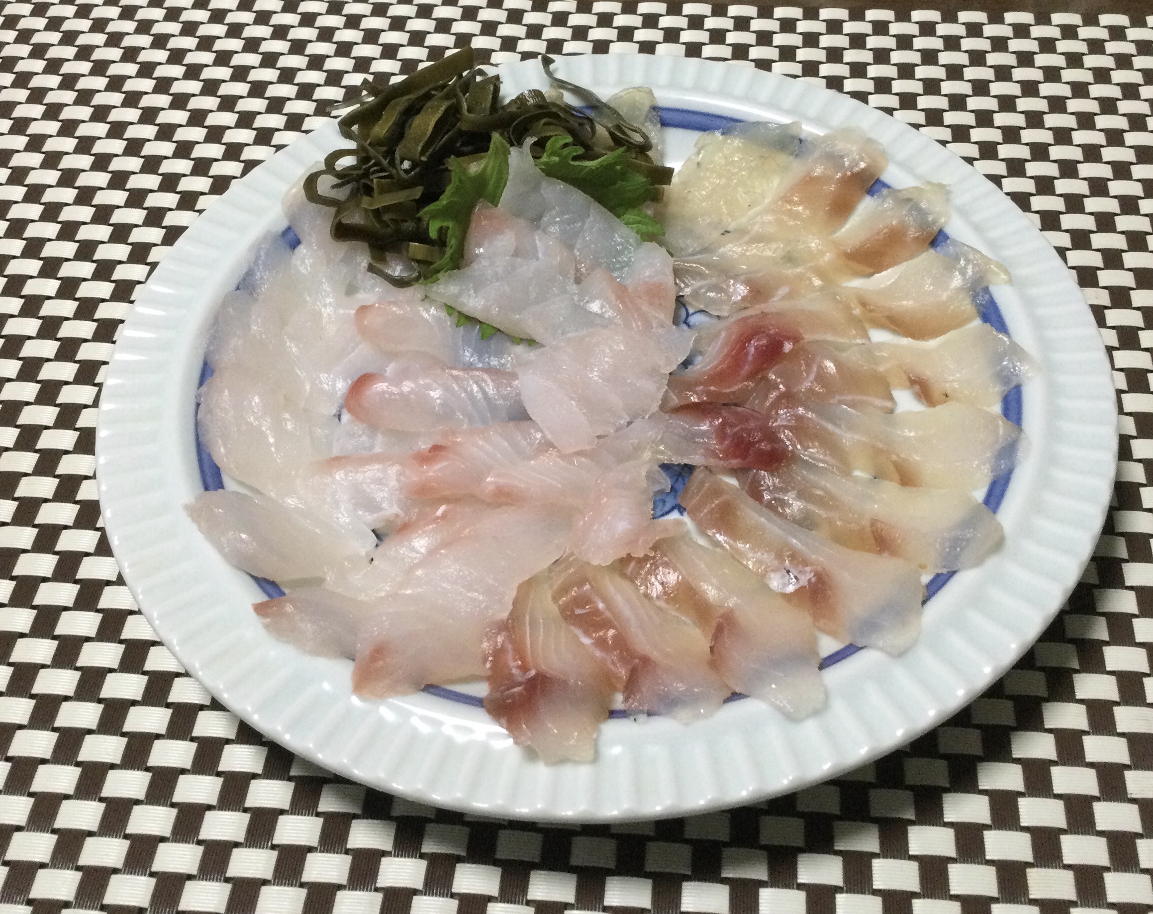 今週は二神島で釣ったクロの刺身で2日間熟成させました。