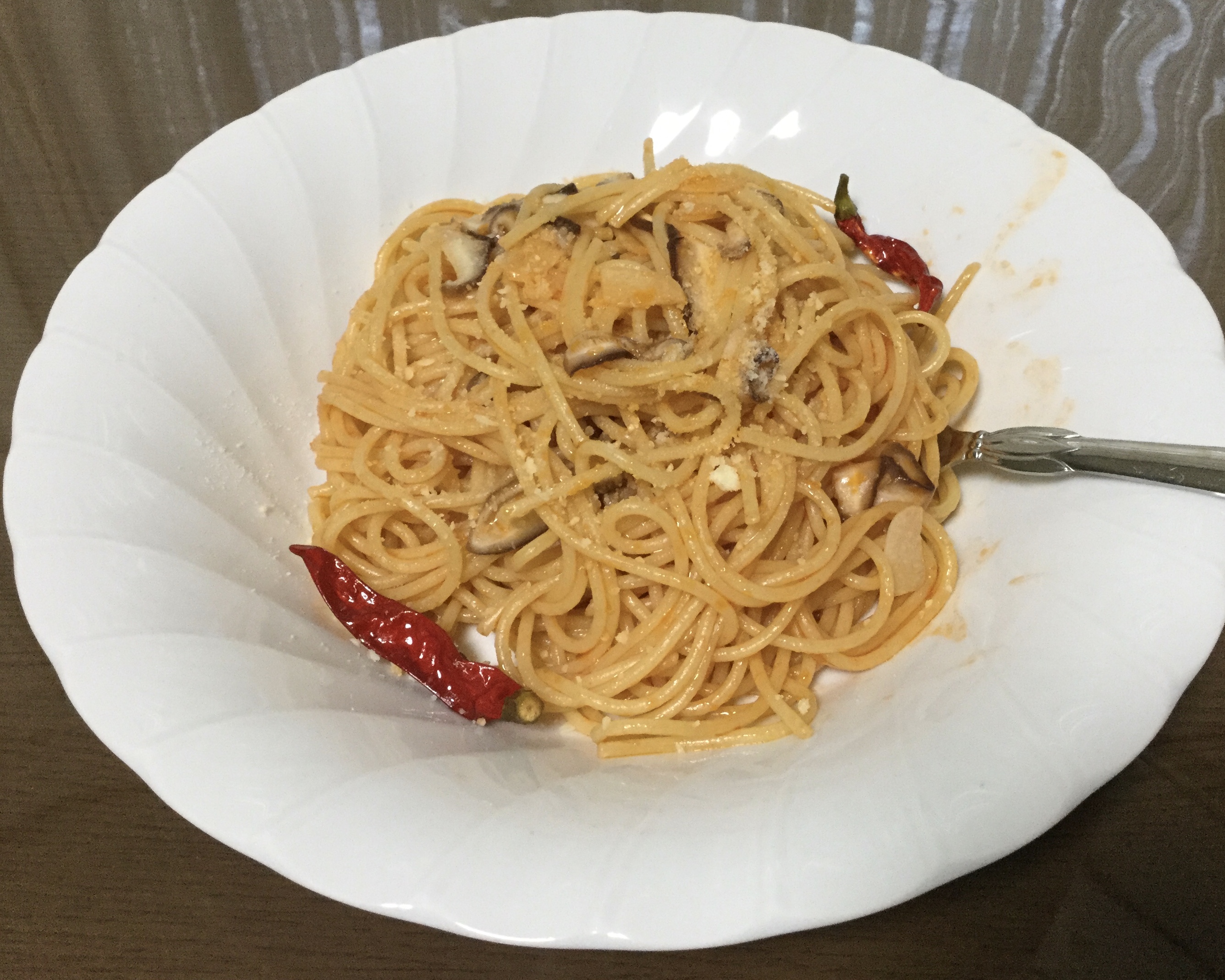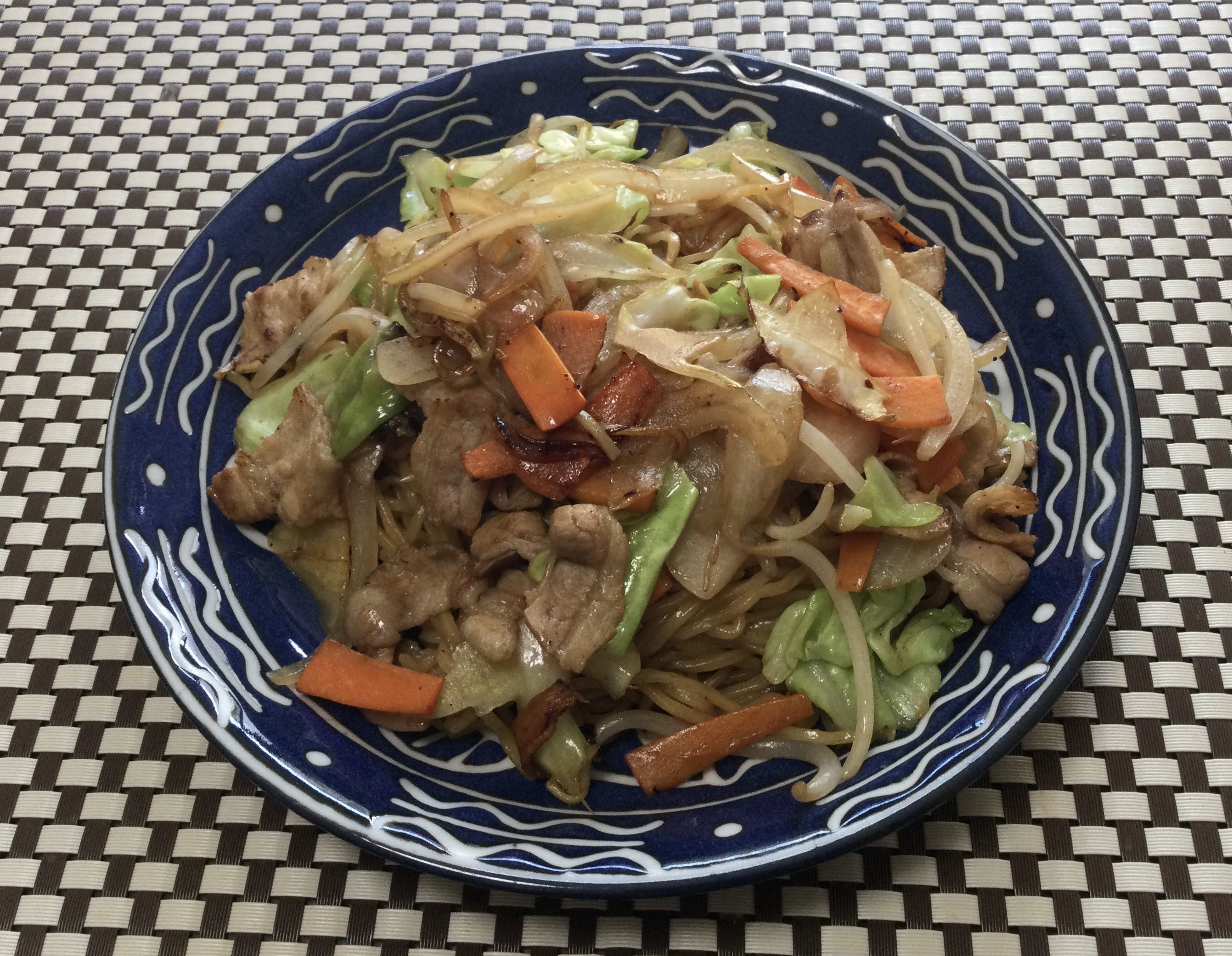 ケチャップ少なめの減塩ナポリタンです。