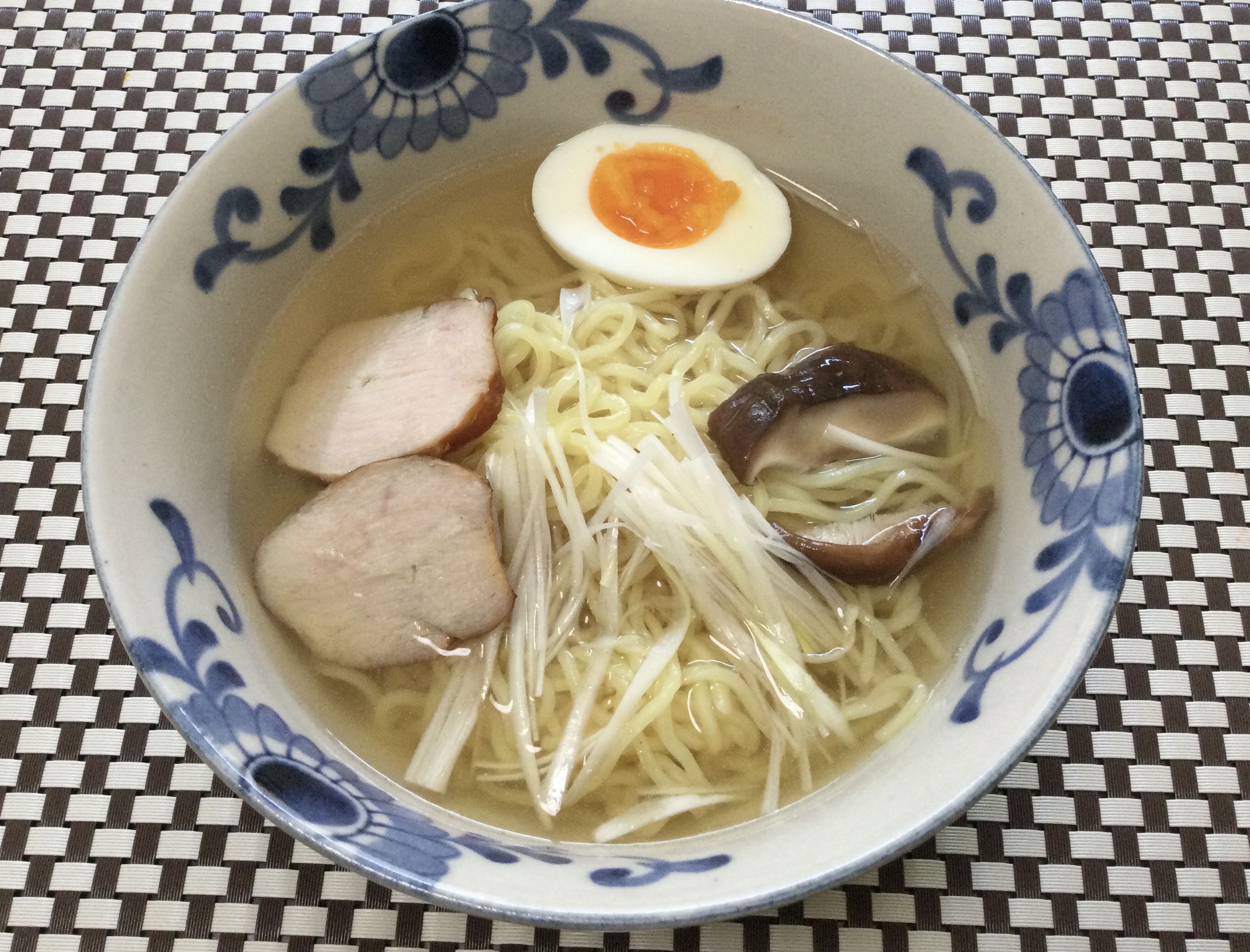 中華スープと濃いめのかつお出汁でラーメン