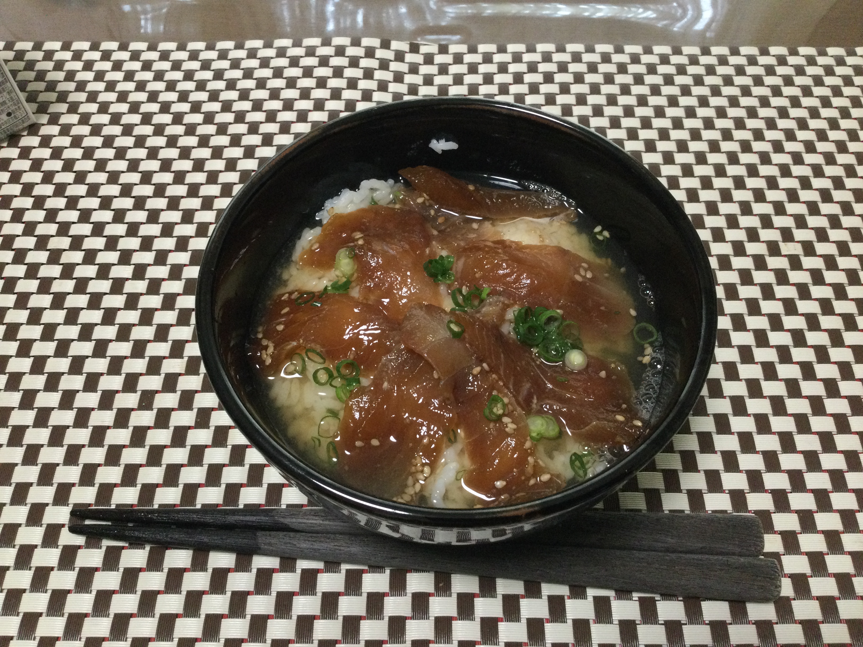 昨日の残り物のクロの漬けで茶漬けです。