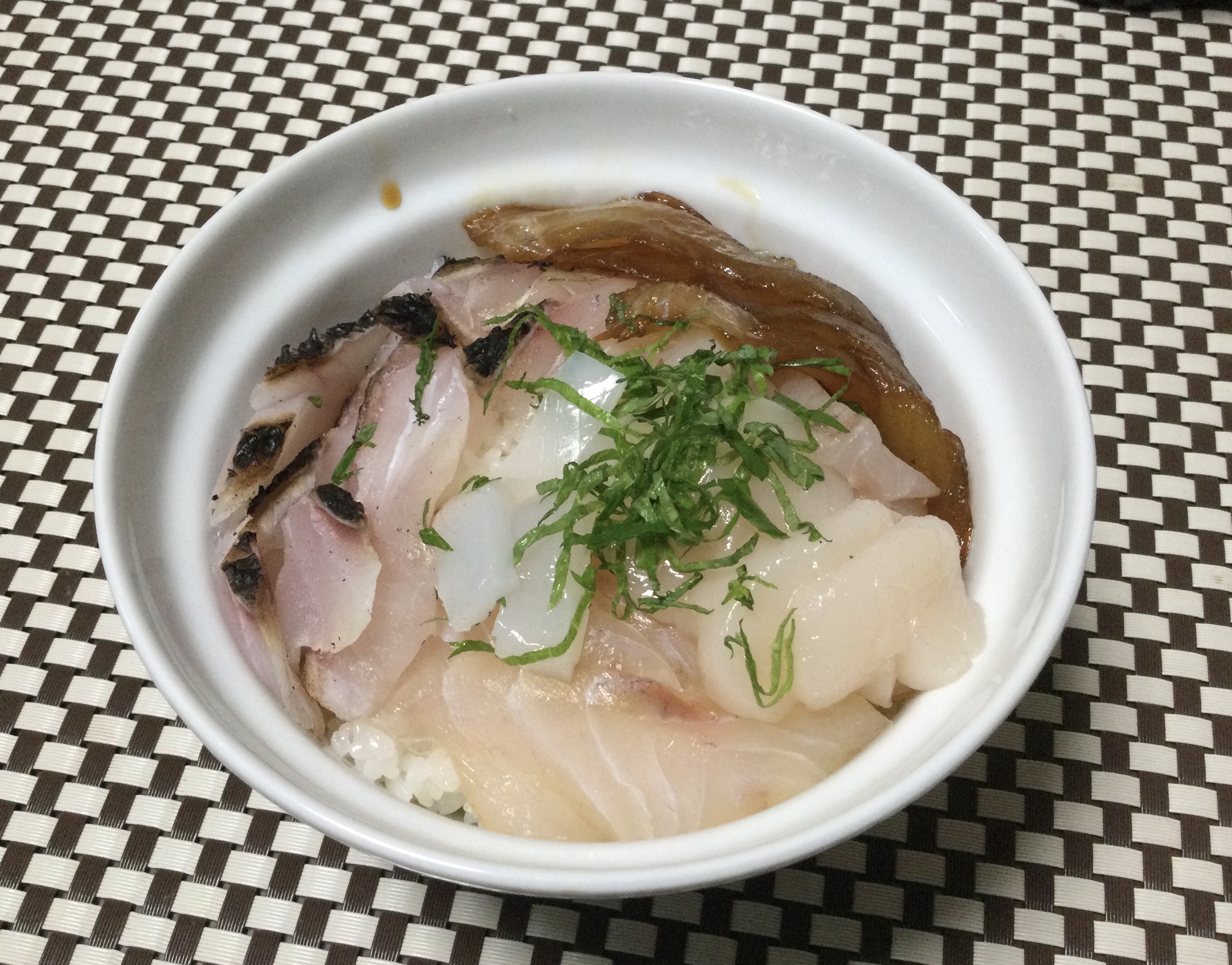 最後にクロの刺身3種で海鮮丼、少し寂しいので冷凍していたイカと貝柱も入れてます。