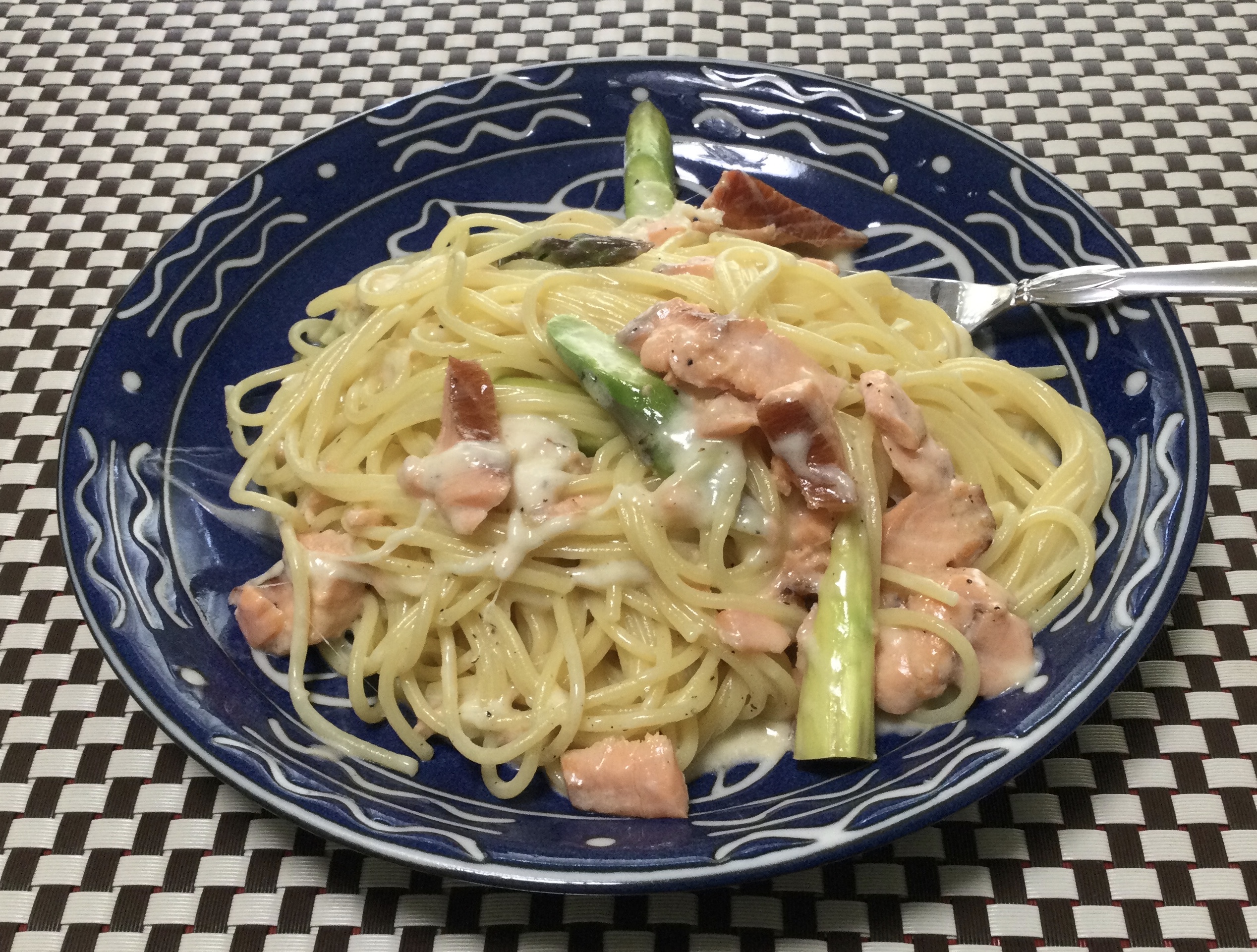 自家製スモークサーモンとモッツァレラチーズのスパゲッティ