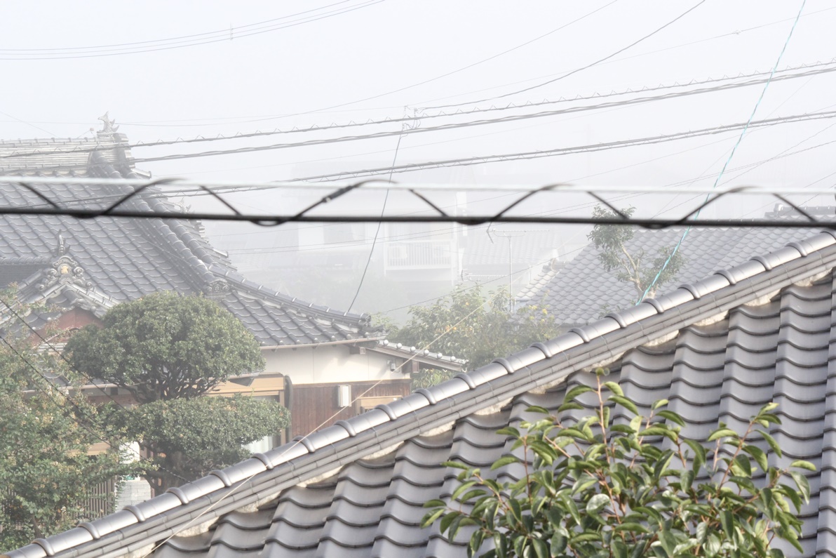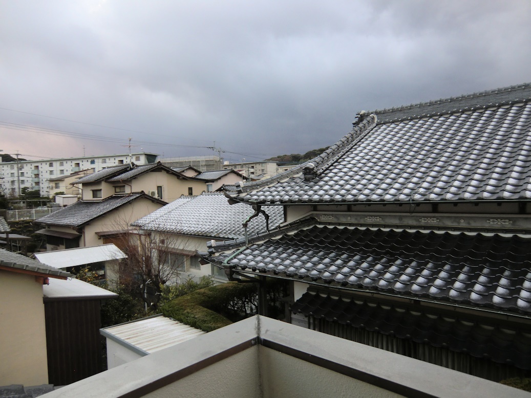 夜中に雪が降ったようで北向きの屋根にはうっすらと雪が積もっていました。