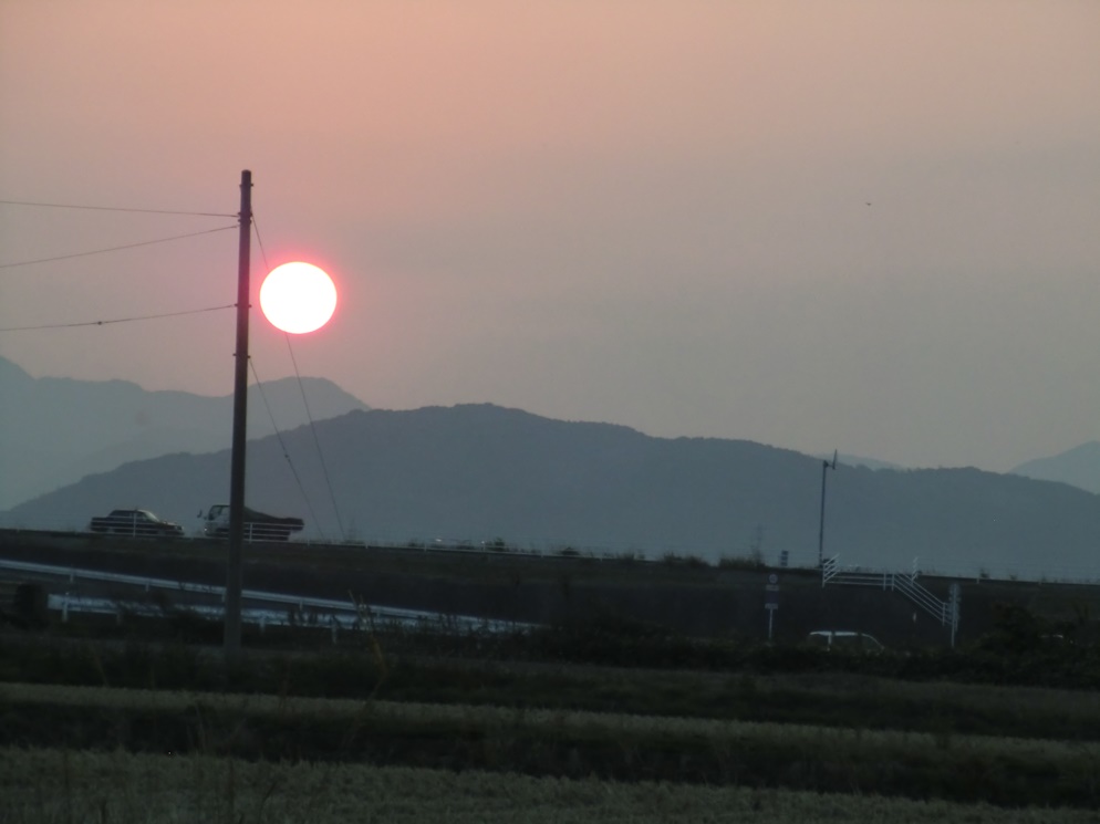 今日は大きくて真っ赤で綺麗な夕日でした。