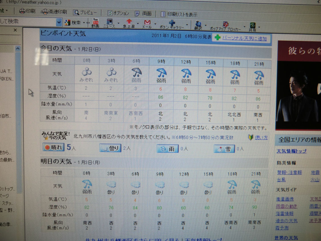 ただ、この天気も今日までで明日からは下り坂です、そして遅い初釣りを予定している日曜日は雪マークが付いています、雪が積もらなければ行くことは出来るんですが?