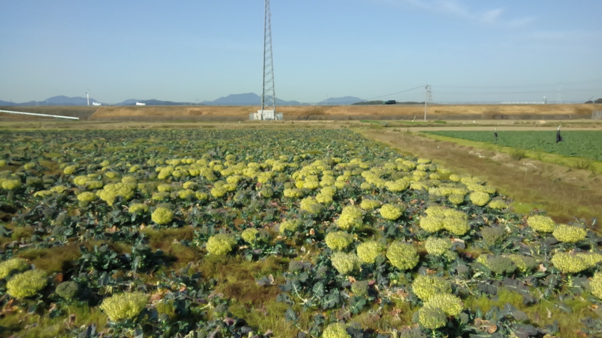 向こうの鉄塔の近くまでブロッコリーの畑ですが、奥の方は収穫が終わってますが