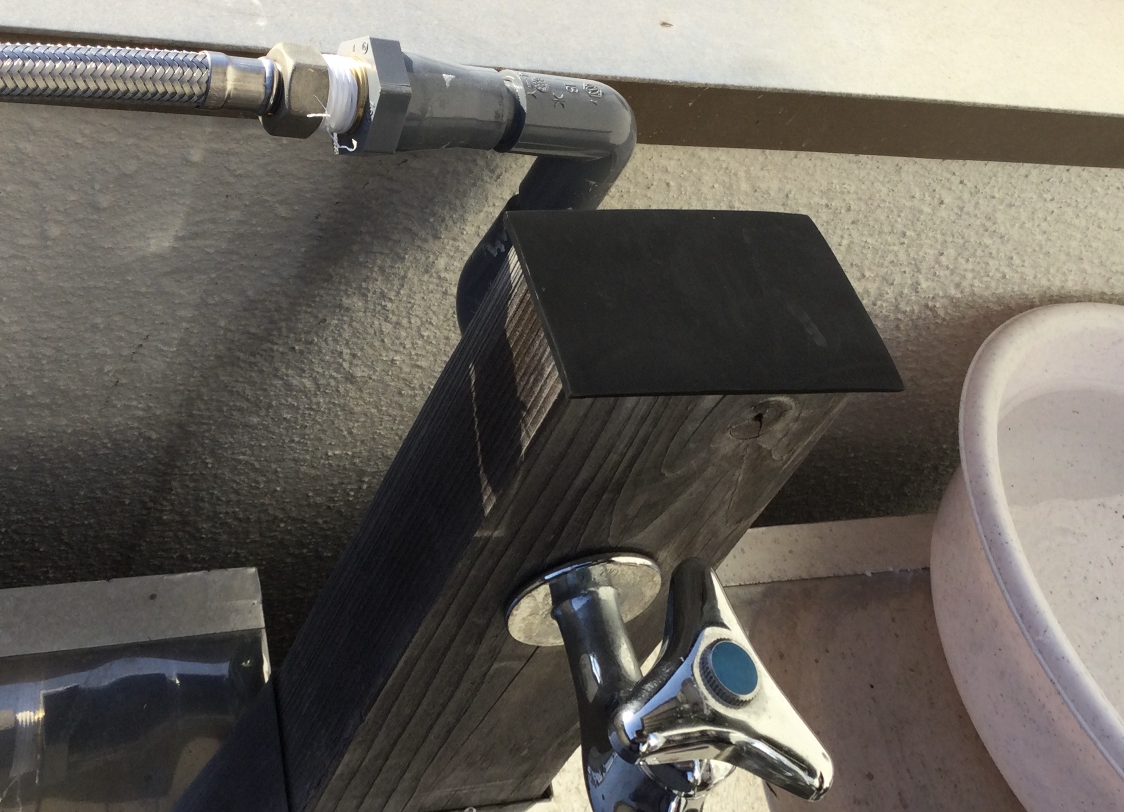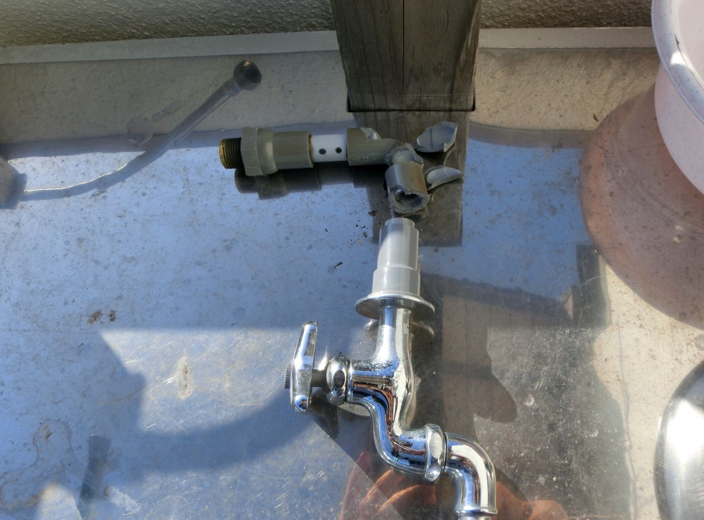 先日の寒波で2階のベランダに設置した水道管が破裂しました。