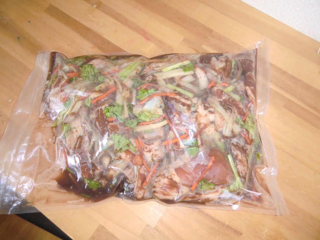 良く擦り込んだらビニール袋などに入れて空気を抜いて1週間ほど寝かせます。