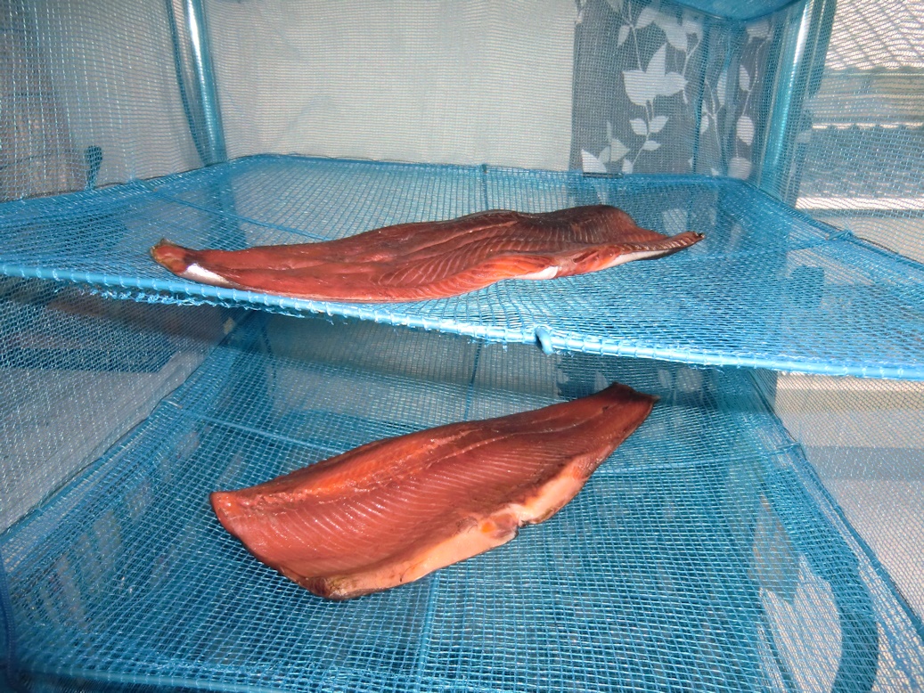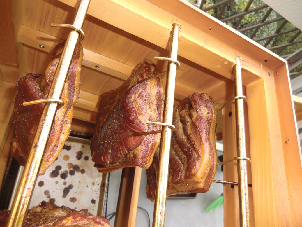 1週間したら塩抜きをして、風乾をして燻煙します。