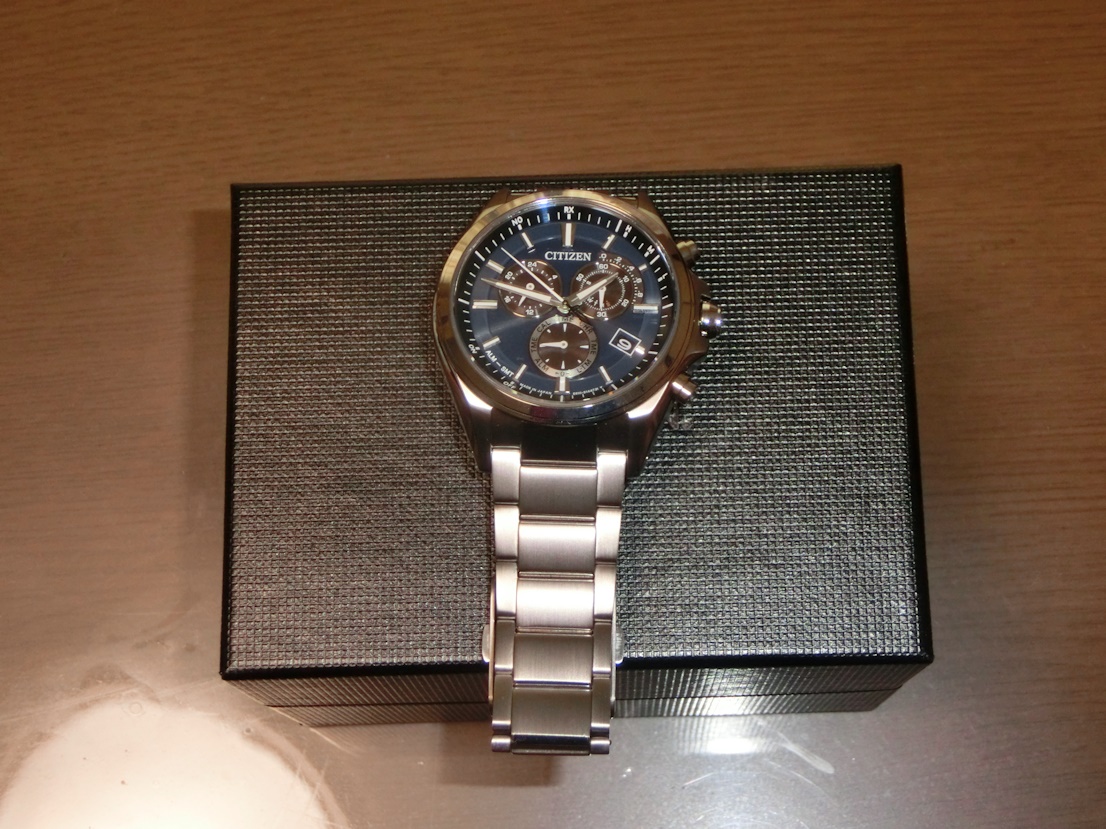 で 昨日届いたのが同じくシチズンのアテッサです、ですがベルトが長すぎてゆるゆるでしたので百均にてベルト調整用の工具を買って来てやっと使えるようになりました。