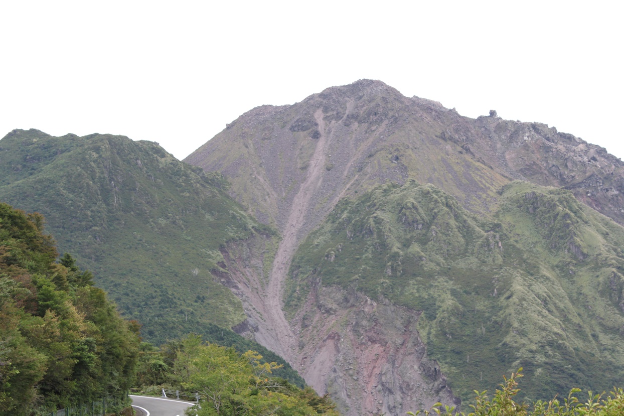 後ろを見れば、土石流の傷跡が生々しい普賢岳が間近に見えます。