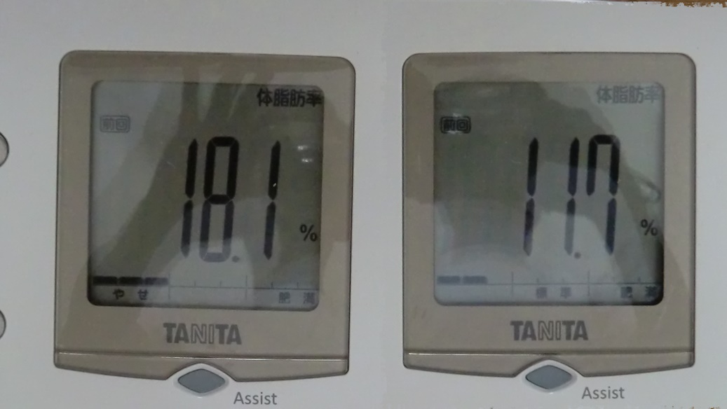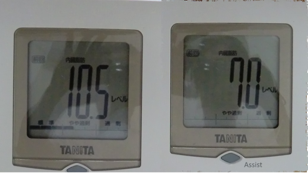 内臓脂肪は、かなり減っている筈なのでこれはアスリートの方を信頼することにします。
