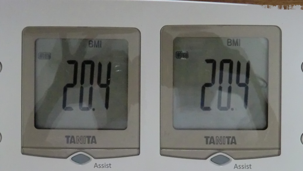 BMIは一緒でした、今日は少し低いです。