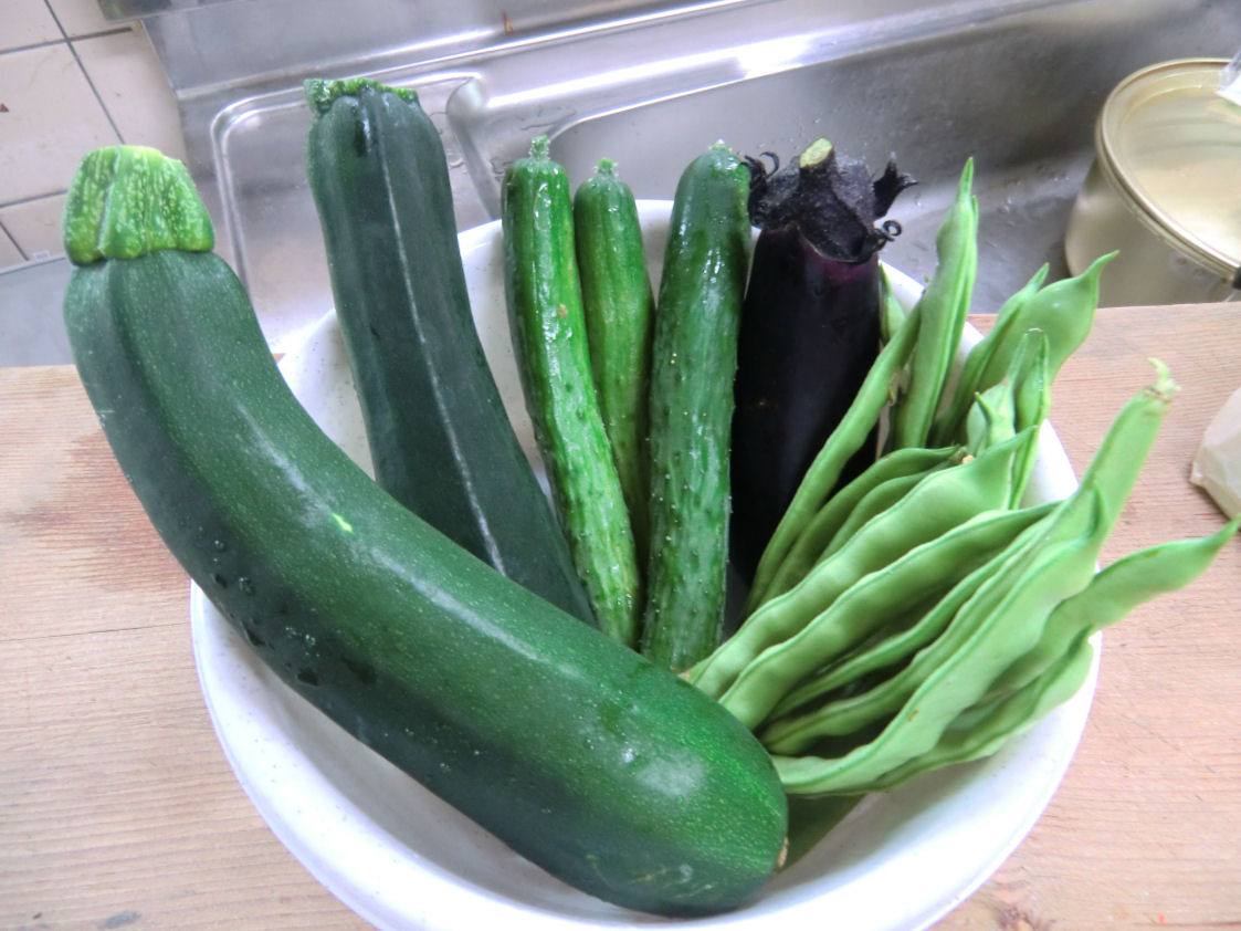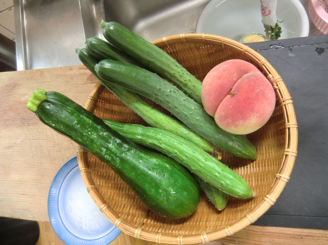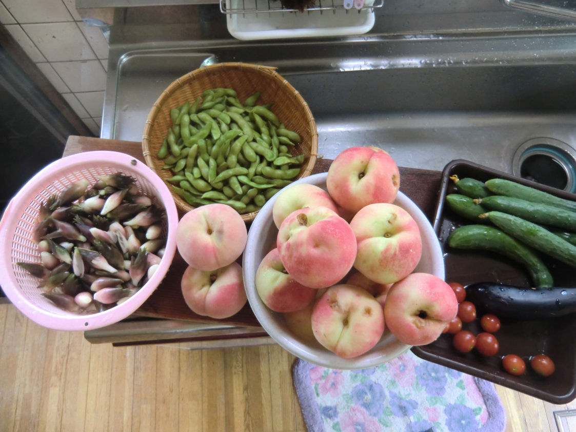 キュウリやナスは一息ついた様で、替わりにミョウガと桃が一気に加速してきました。