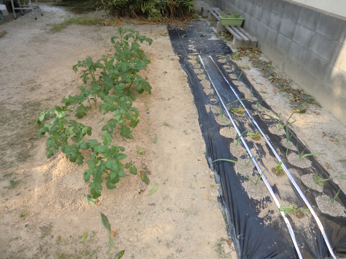 畑にはじゃがいもとニンニクとレタスを植えています。