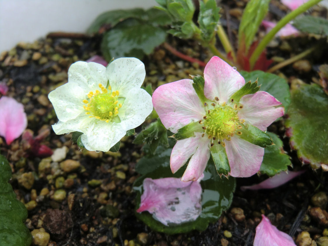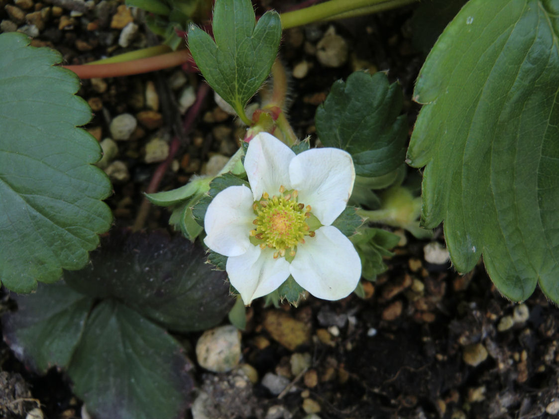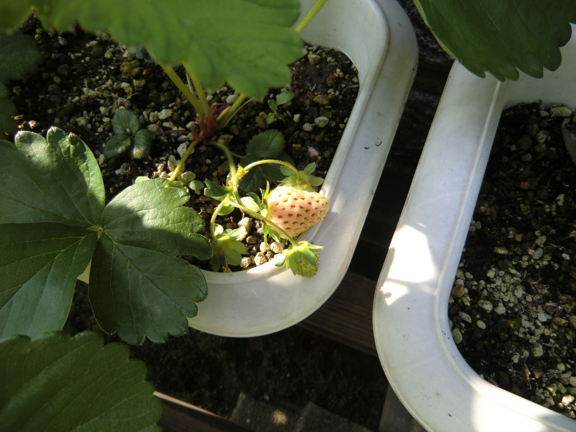 そしてイチゴも次々と花を開き始めました。