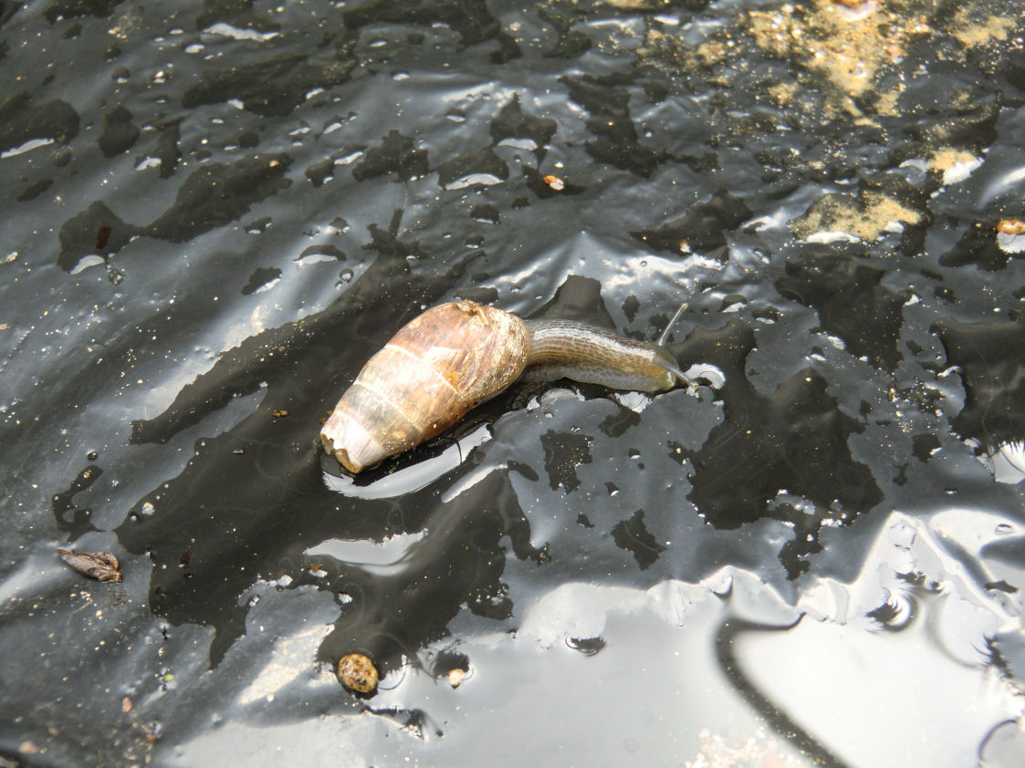 冬の間は土の中で眠っていたナメクジのようなカタツムリのような奴も活動を始めたようです。