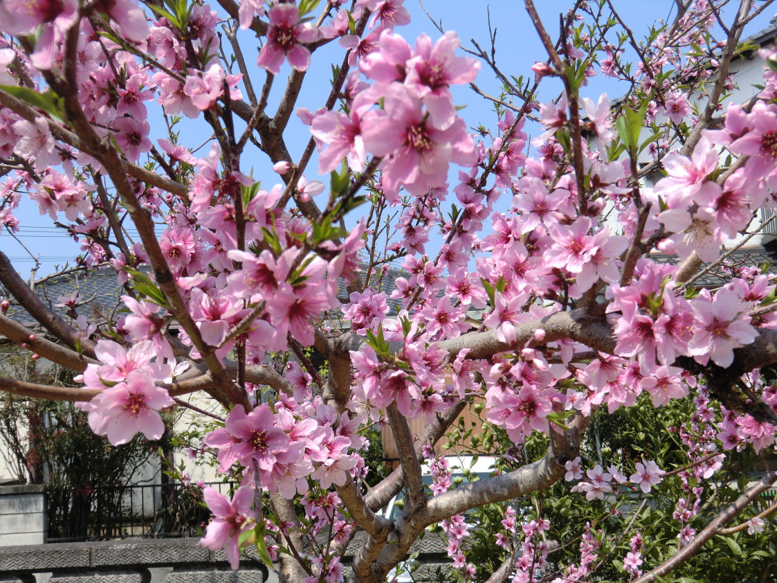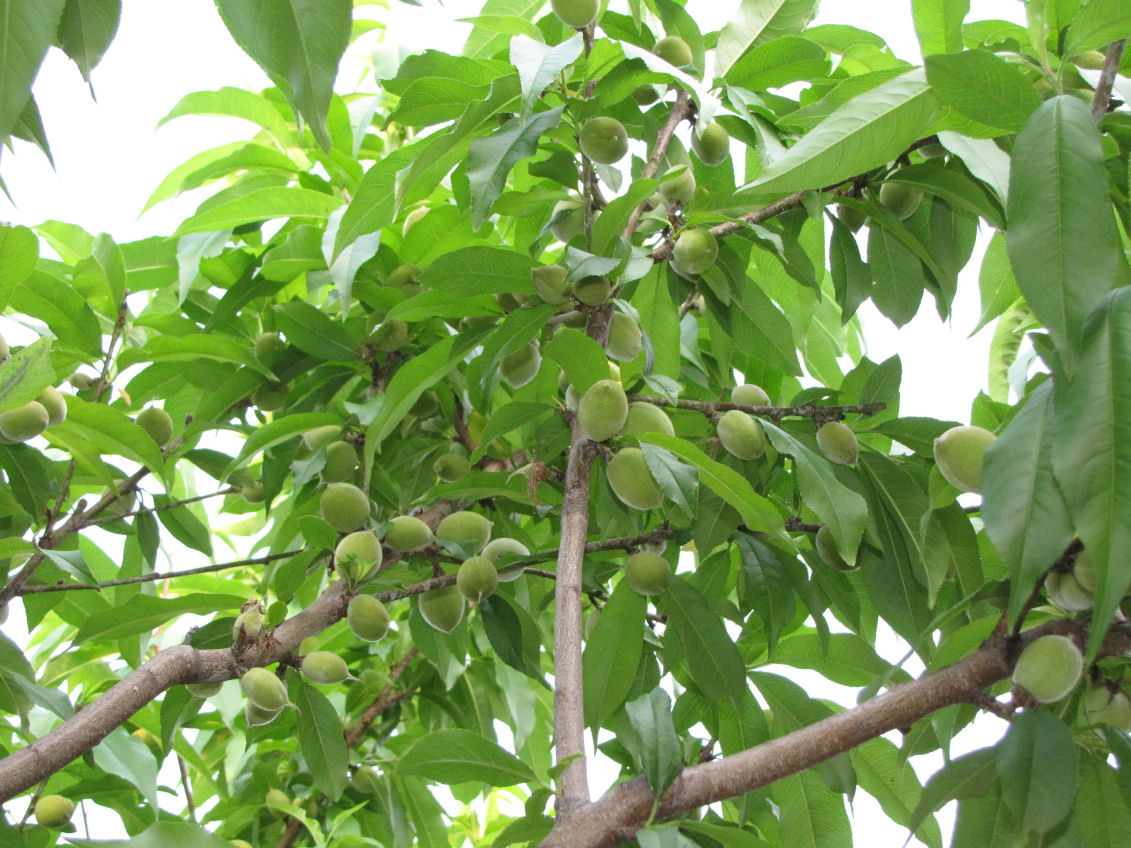 桃の木には桃の実が鈴なりです。