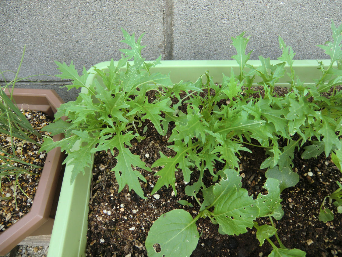 庭で栽培しているのはかなり虫に喰われていますが無農薬の証しで安全な野菜です。