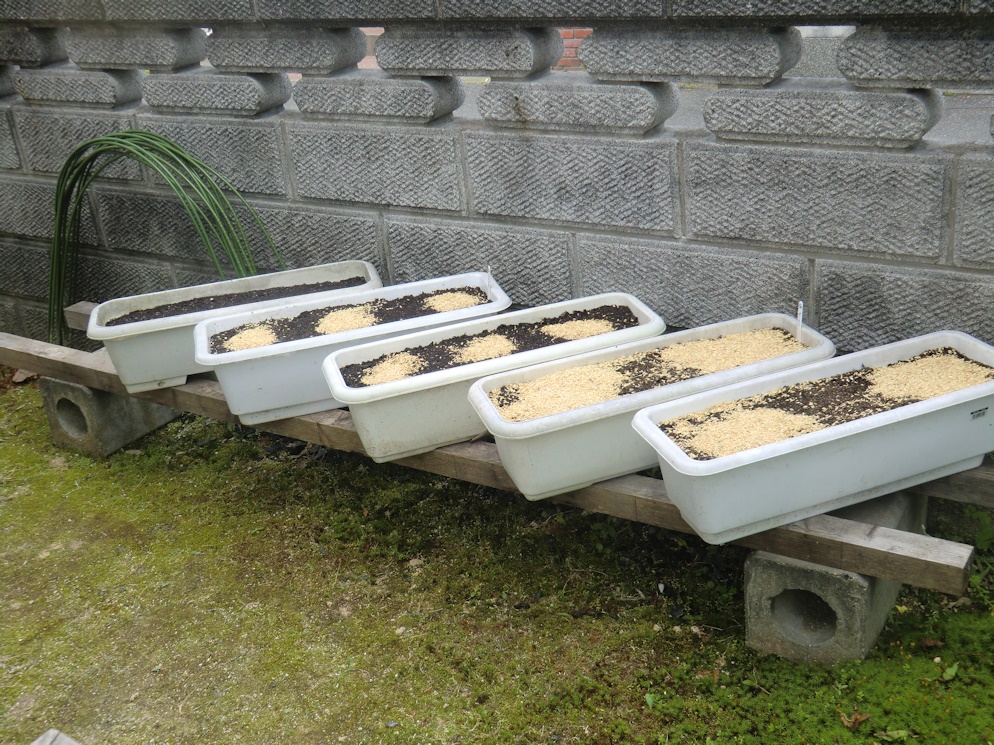 このネギの芽だしがなかなか上手くいかず、今回は畑の土を混ぜて土のキメを細かくして種に密着させるようにしたらようやく芽を出してくれました。