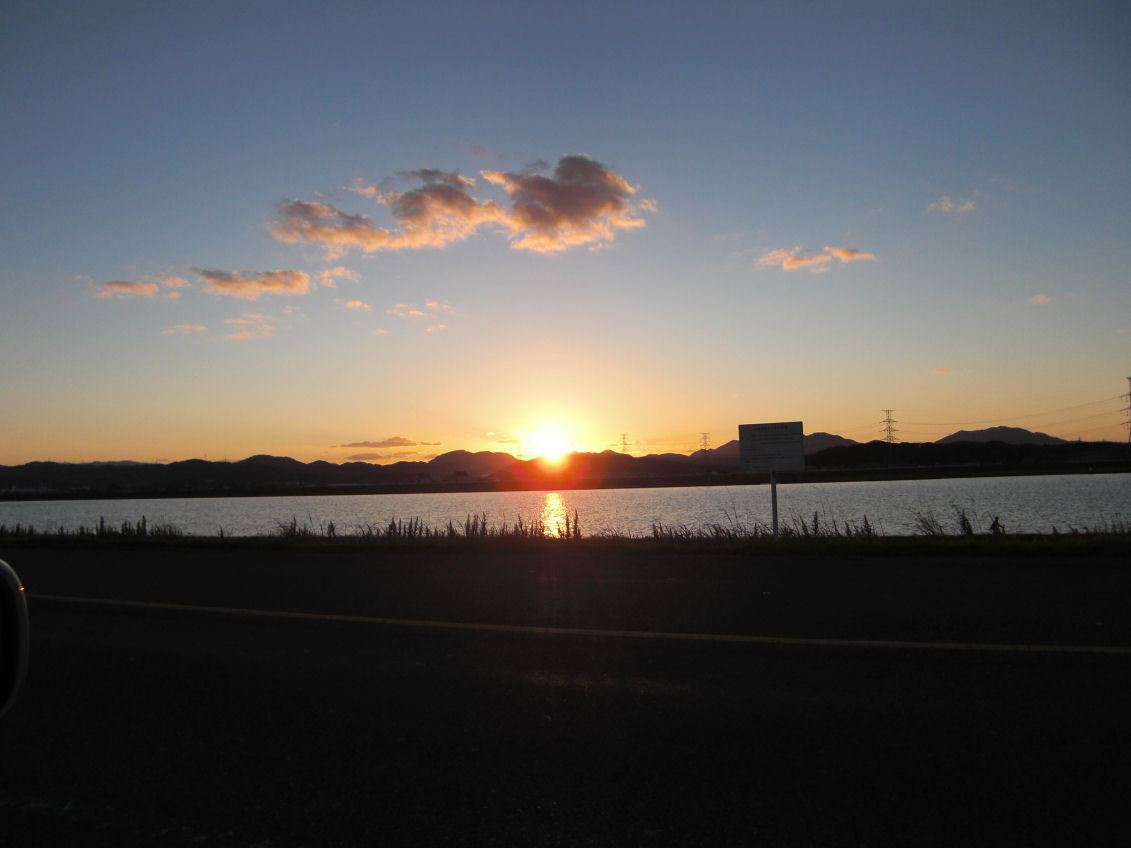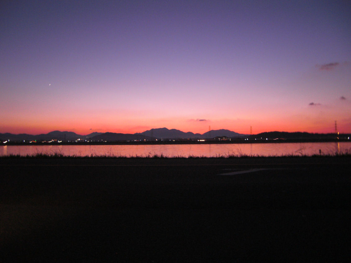 というところで今日はサーモンピンクに染まる遠賀川です。