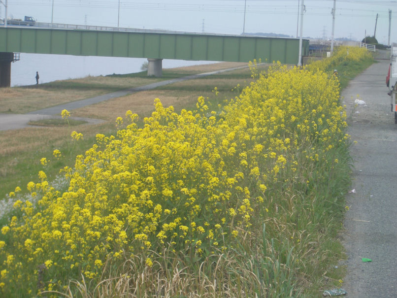 同じく遠賀川の土手に咲くつくしです、3月だと白いビニール袋を持った人たちが、つくしを採っている風景が見れますが4月に入るとさすがにつくしも残ってないですね。