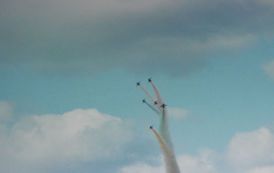 朝から家のすぐ上を、ジェット機が飛び交ってうるさくて話も出来ません。買い物に行ったついでに遠賀川の土手で、ブルーインパルスが来るのを待って、(2時間位)デジカメで撮ってみましたが、こんなものでした。