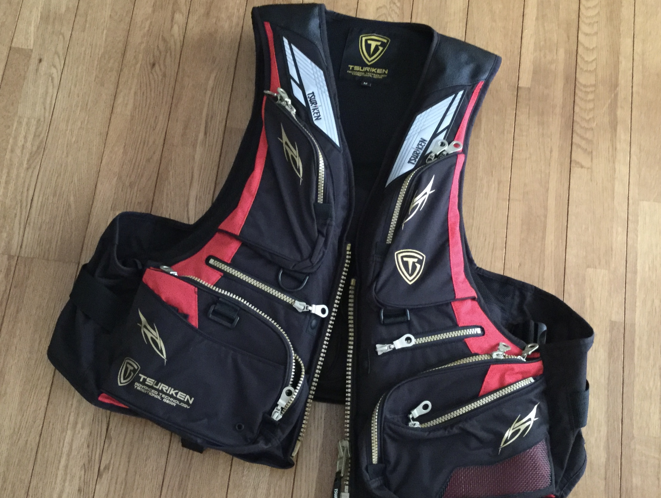 今日は釣研のライフジャケットです、一つは夏用の背中がメッシュのものです。