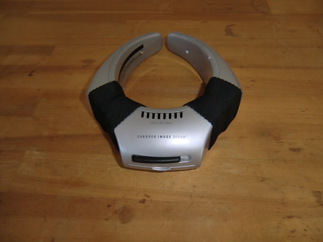 黒い布の所をめくって水を入れて、気化熱を利用して首筋を冷やすクーラーです。
