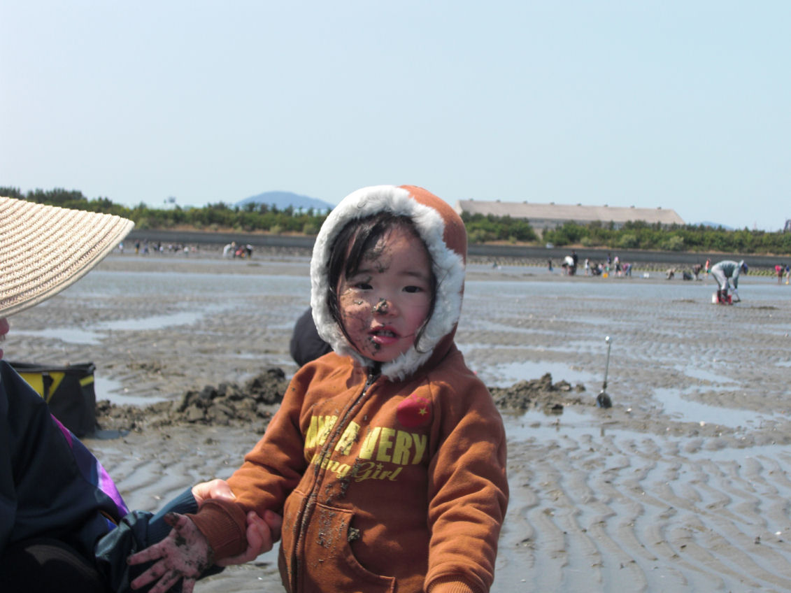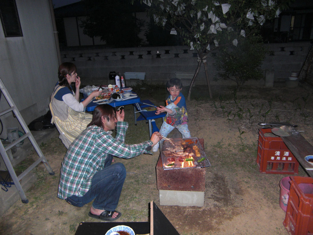 なんだか酒のケースが椅子代わりと言うのはいかにも飲んでますという感じですね。明日はこの子を連れてマテ貝を掘りに行こうと思っています。