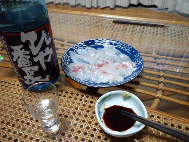知人から頂いた鯛を刺身にして一杯やっています。