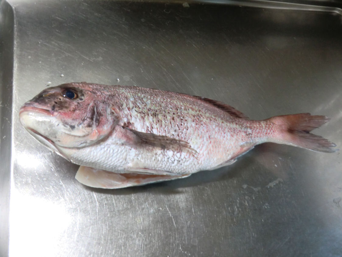 この鯛は地元の玄界灘に浮ぶ宗像大島の海洋釣堀の鯛です。