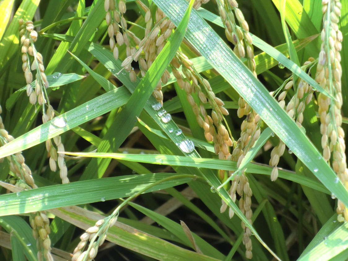 そして 収穫間近の稲の葉に夜露が光っていました。