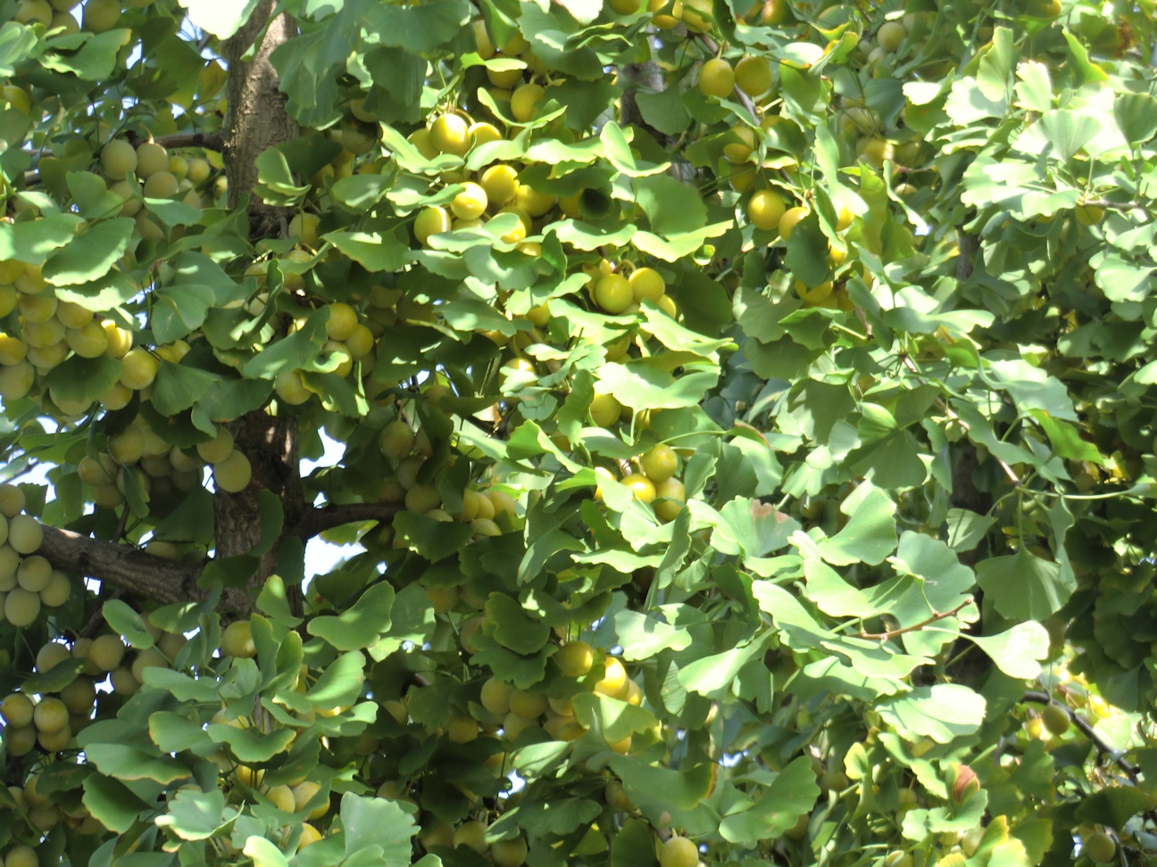 家の近くに植えられている公孫樹の木に、ぎんなんが沢山ぶら下がっていました。