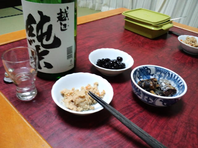 越辺(おっぺ)の純米をおからと黒豆で遣ってます。