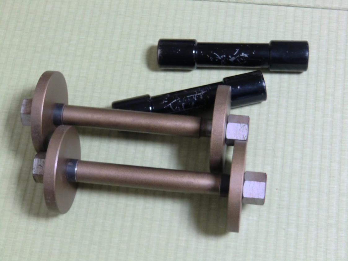 黒の小さい方が3㎏で、大きなダンベルが6㎏あります。