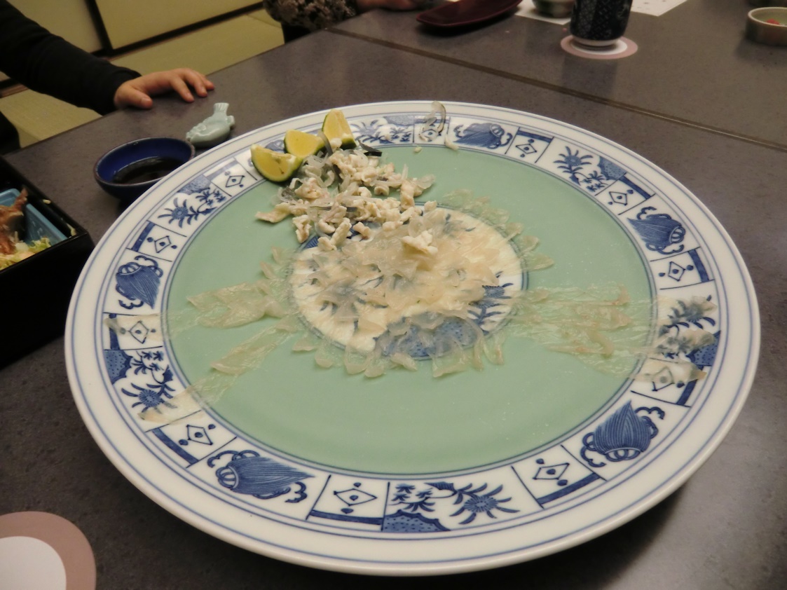 次にはふぐの薄造りですが、もうこの時点で酒と料理に夢中で写真を撮り忘れたりでこの通りです。