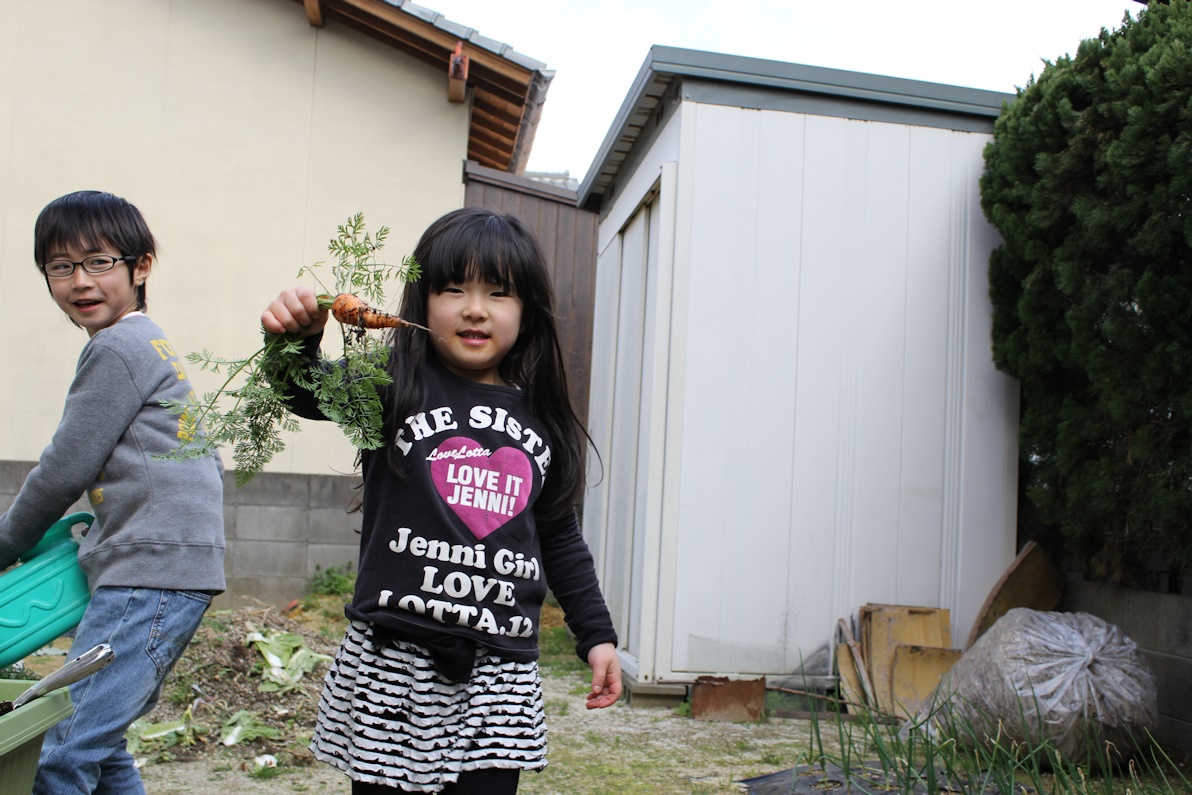 プランター栽培の人参が収穫できるようになったので抜いてもらいました。