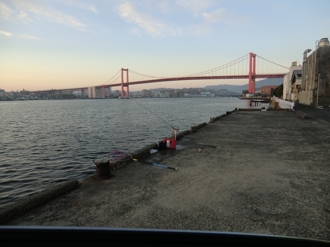 今日は9時頃から南西の風が強くなる予報だったので、第一候補の裏門司を諦めて若松まで戻り洞海湾での竿出しになりました。