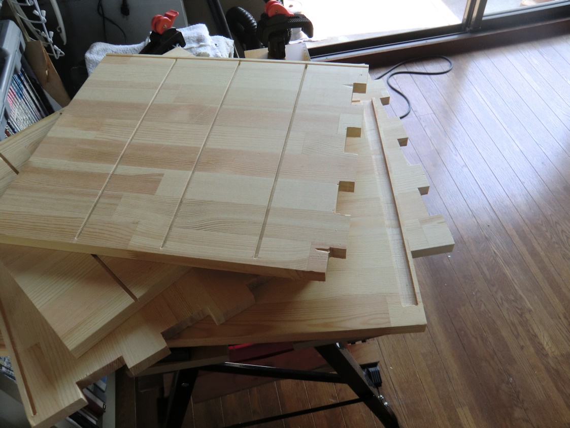 今年の初めに材料を買って、やっと側板の切り込みと溝掘りが終わりました。